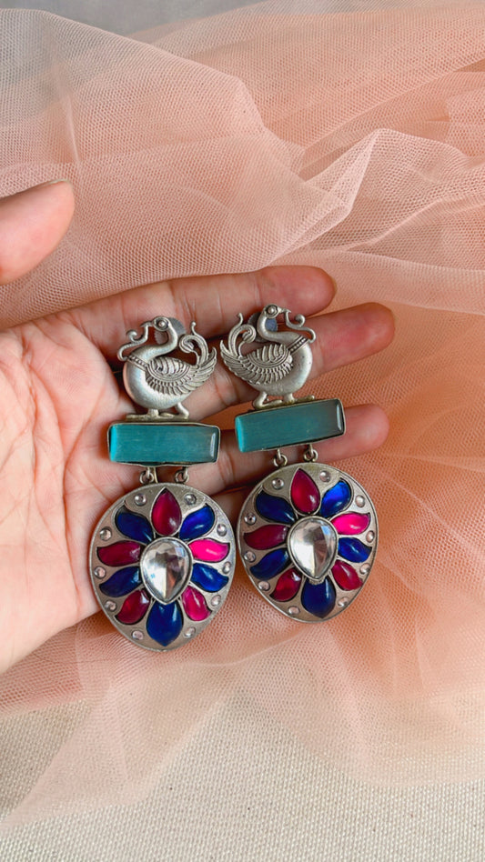 Aqua Mrigh Silver Earring