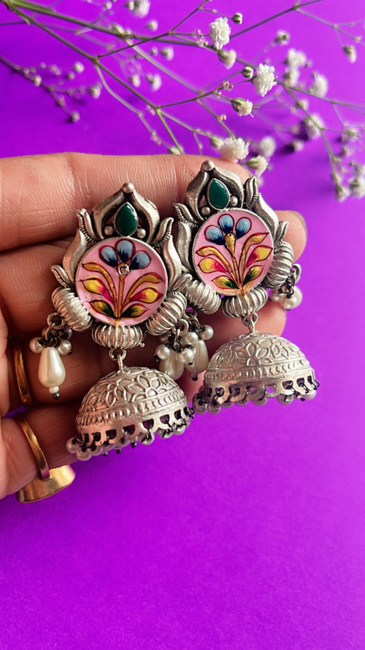 Pink Reet Jhumka Silver Earring