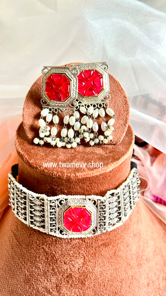 Pink Ramika Silver Neckpiece Set
