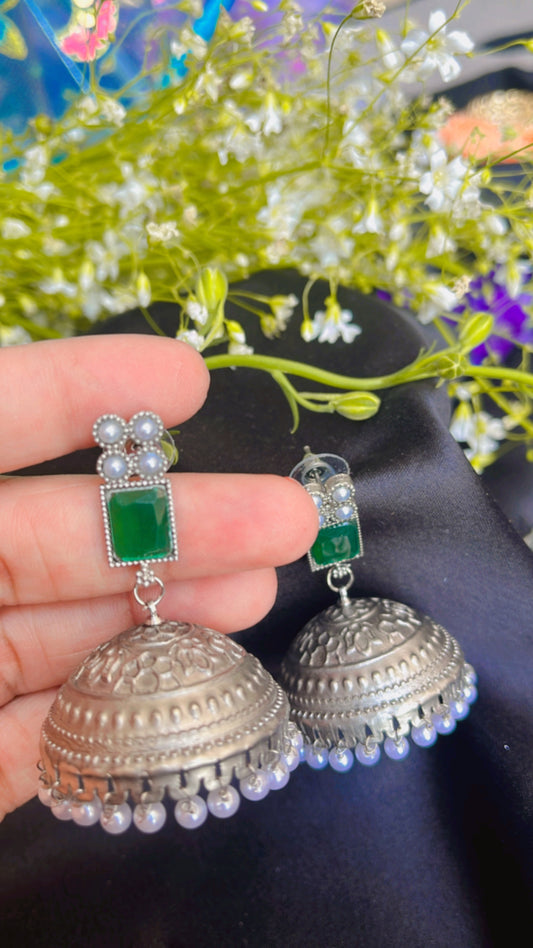 Kash Green Jhumka Silver Earring