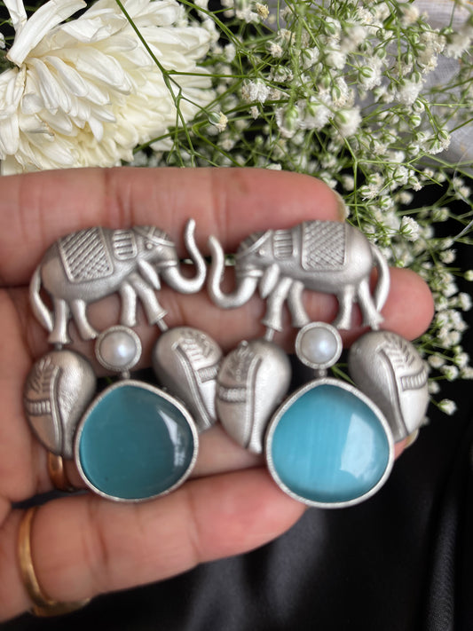 Blue Gajanand Silver Earring