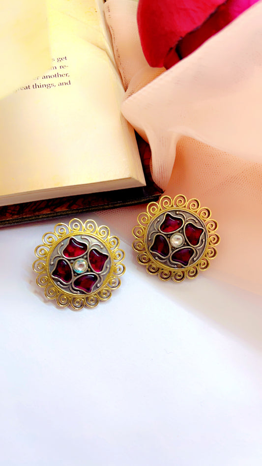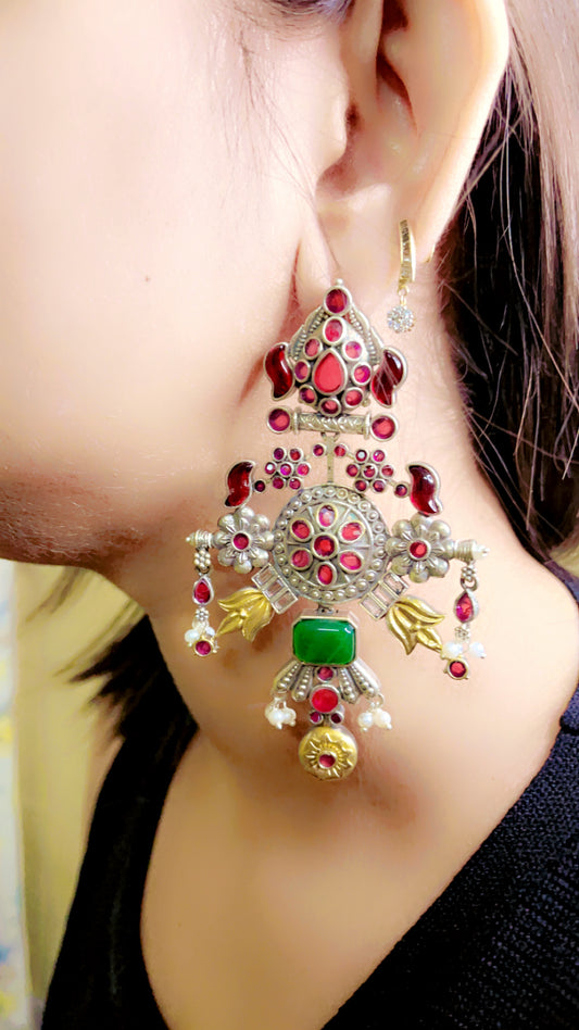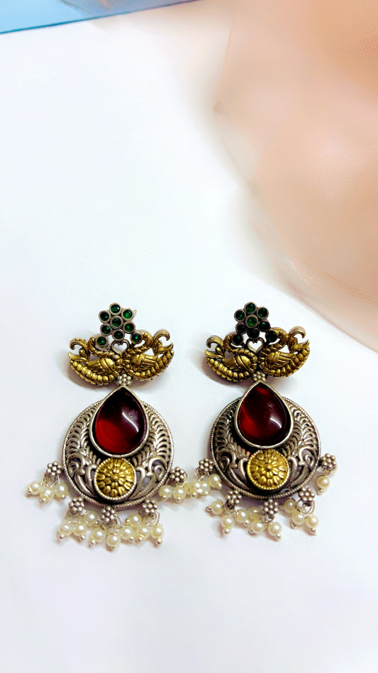 Red Jahnvi Silver Earring