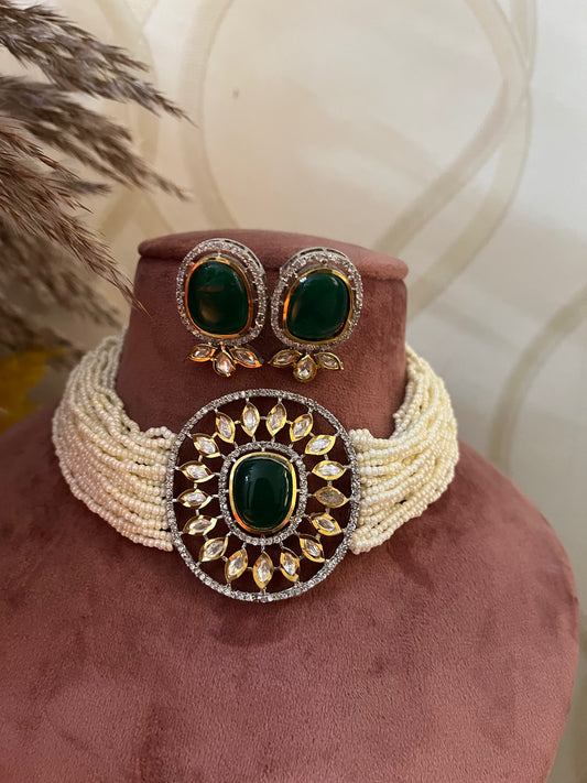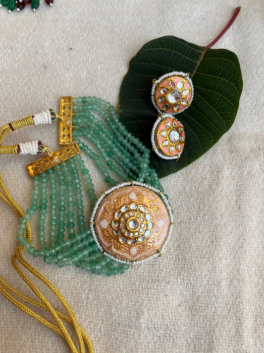 Pearl Green Pankuri Necklace Set