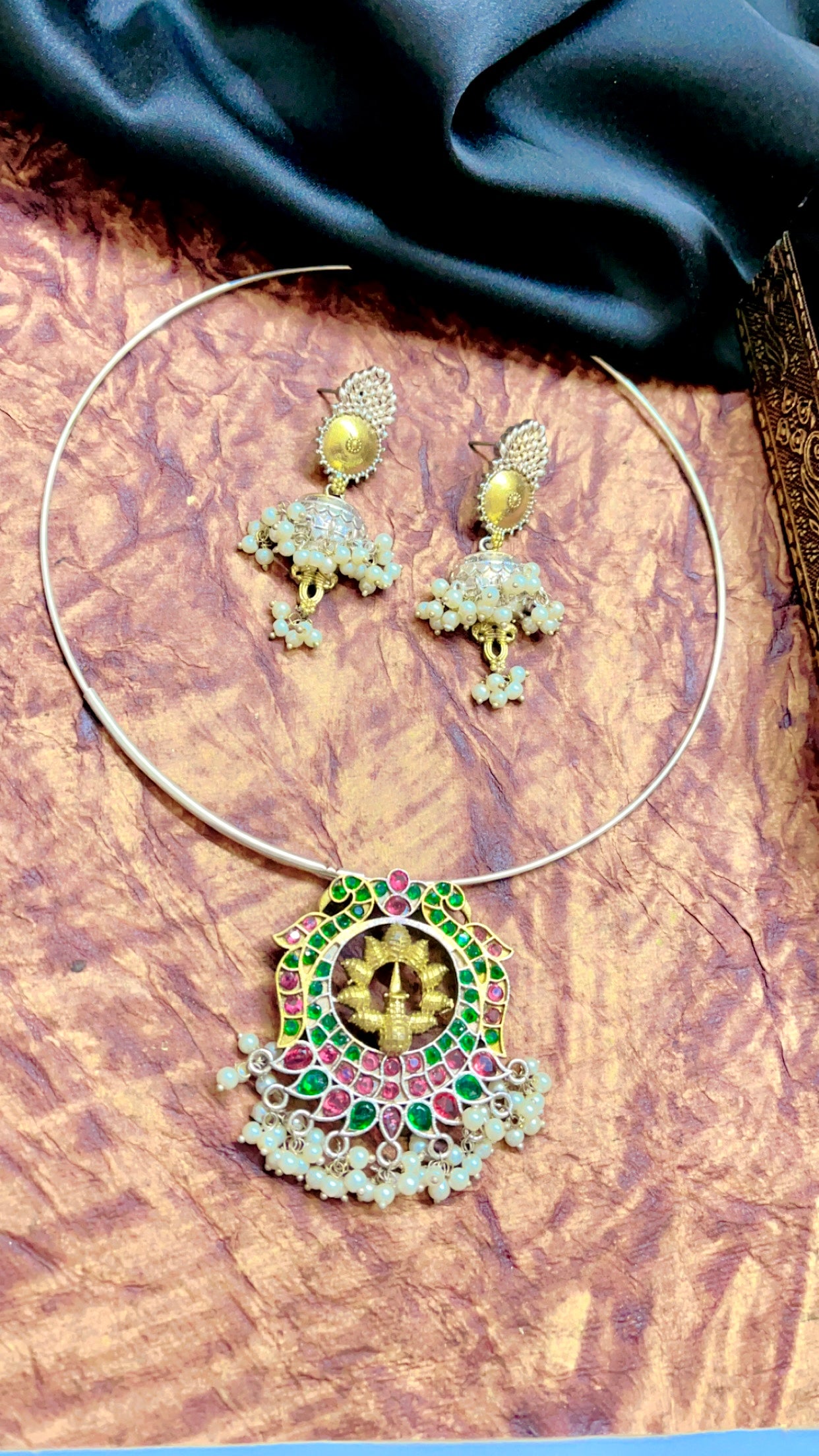 Material | Brass metal, polki, pearl |