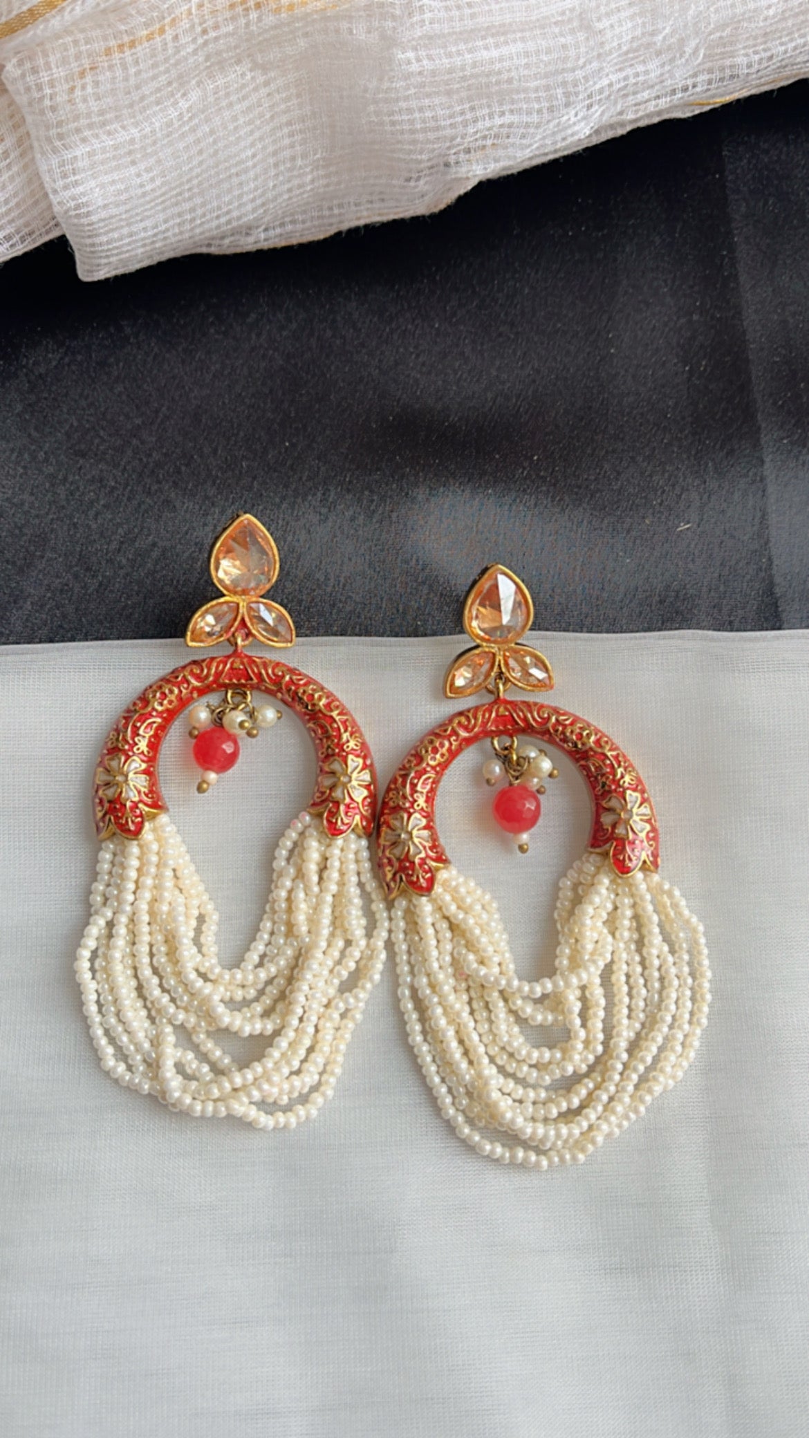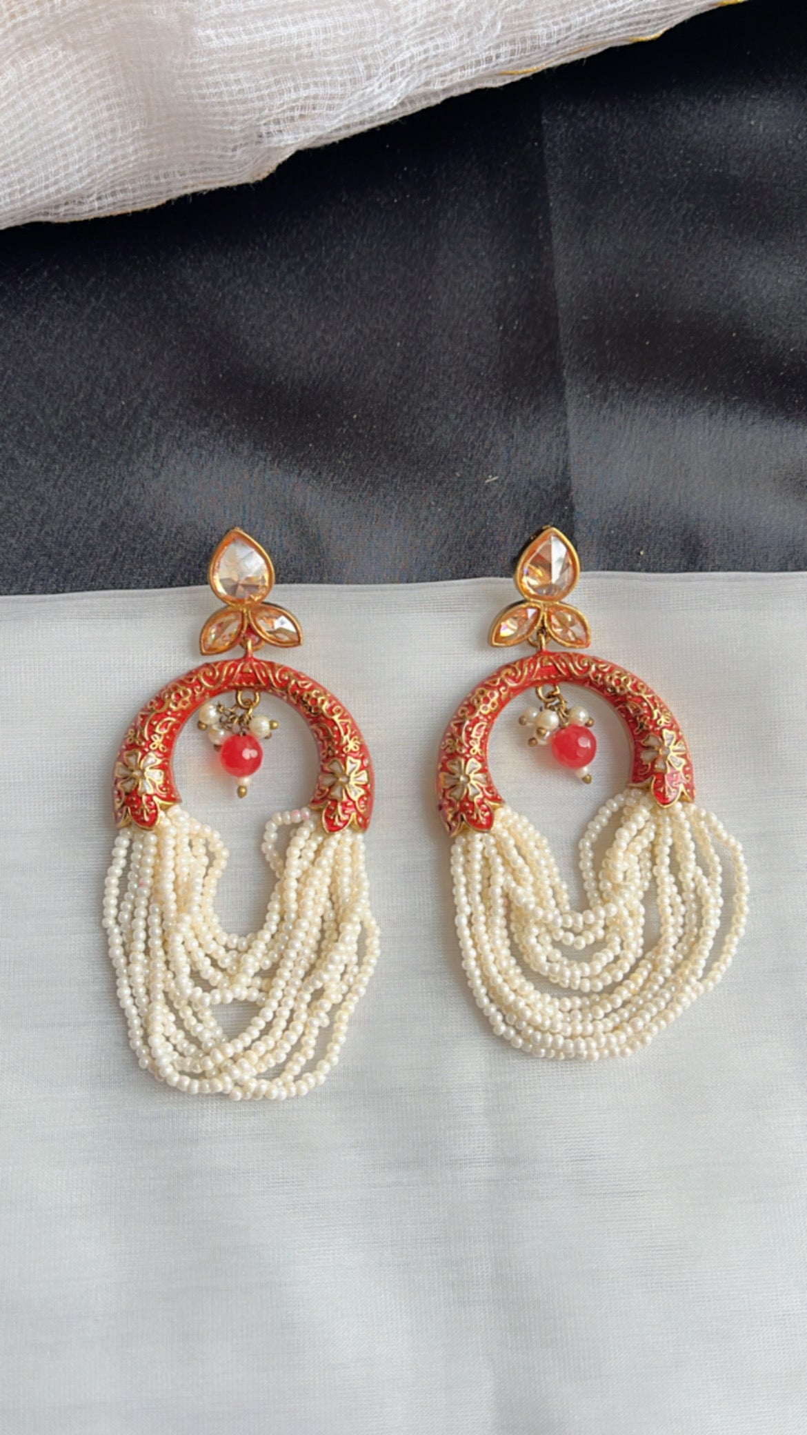 Transform any outfit with our Red Mehak Ethnic Earrings. These earrings are the perfect addition to your jewelry collection. Suitable for any occasion, they effortlessly elevate your Indian attire. Upgrade your style with our elegant and versatile earrings.