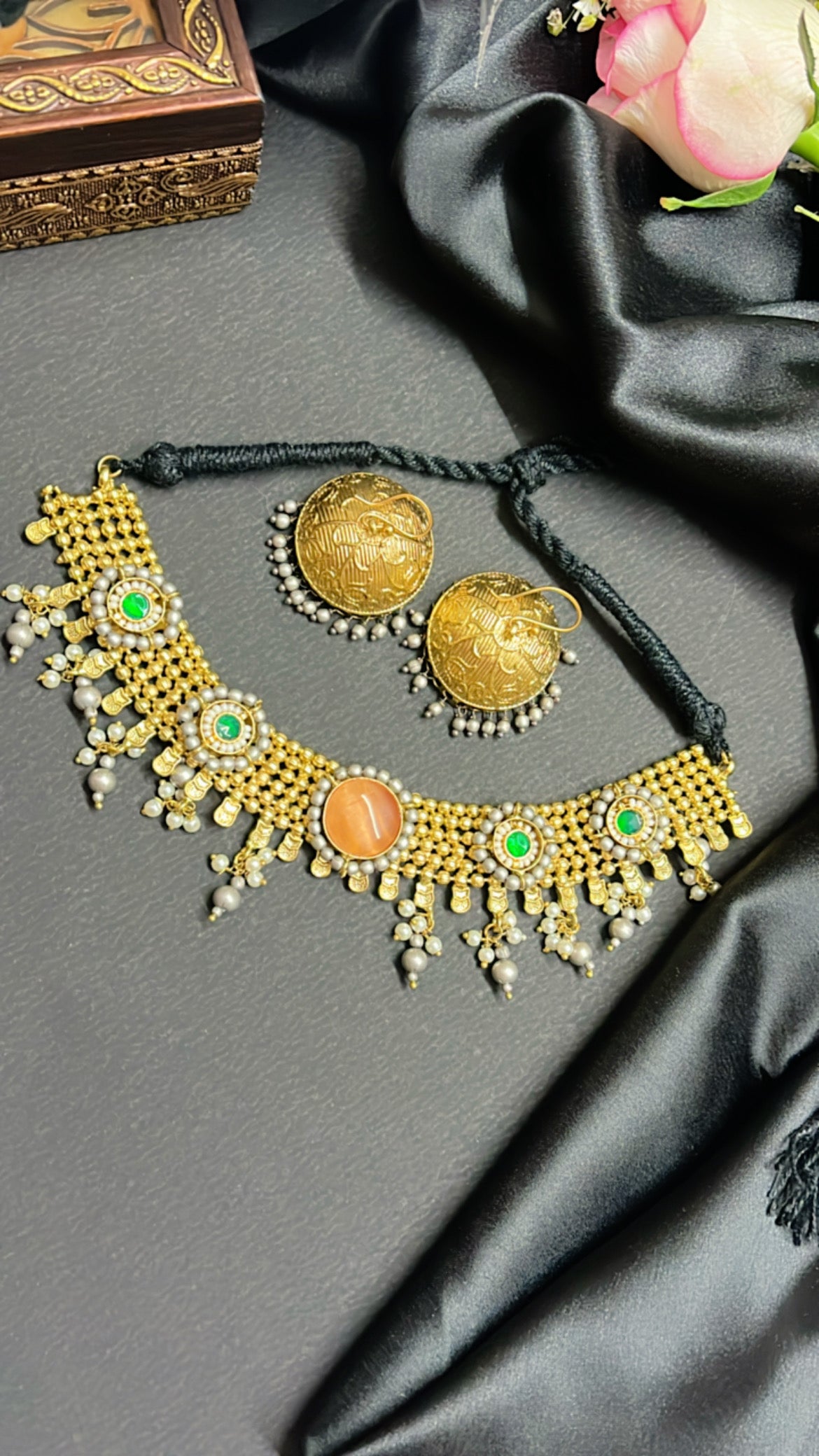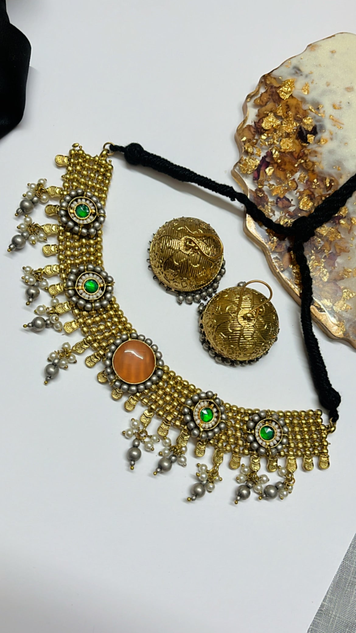 Elevate your style with our Mehaka Neckpiece Set. This set is beautifully designed with bold details, adding an elegant touch to any outfit. Perfect for those who love a boho or chic look. Made from high-quality materials, this set is a must-have for any fashion-forward individual.