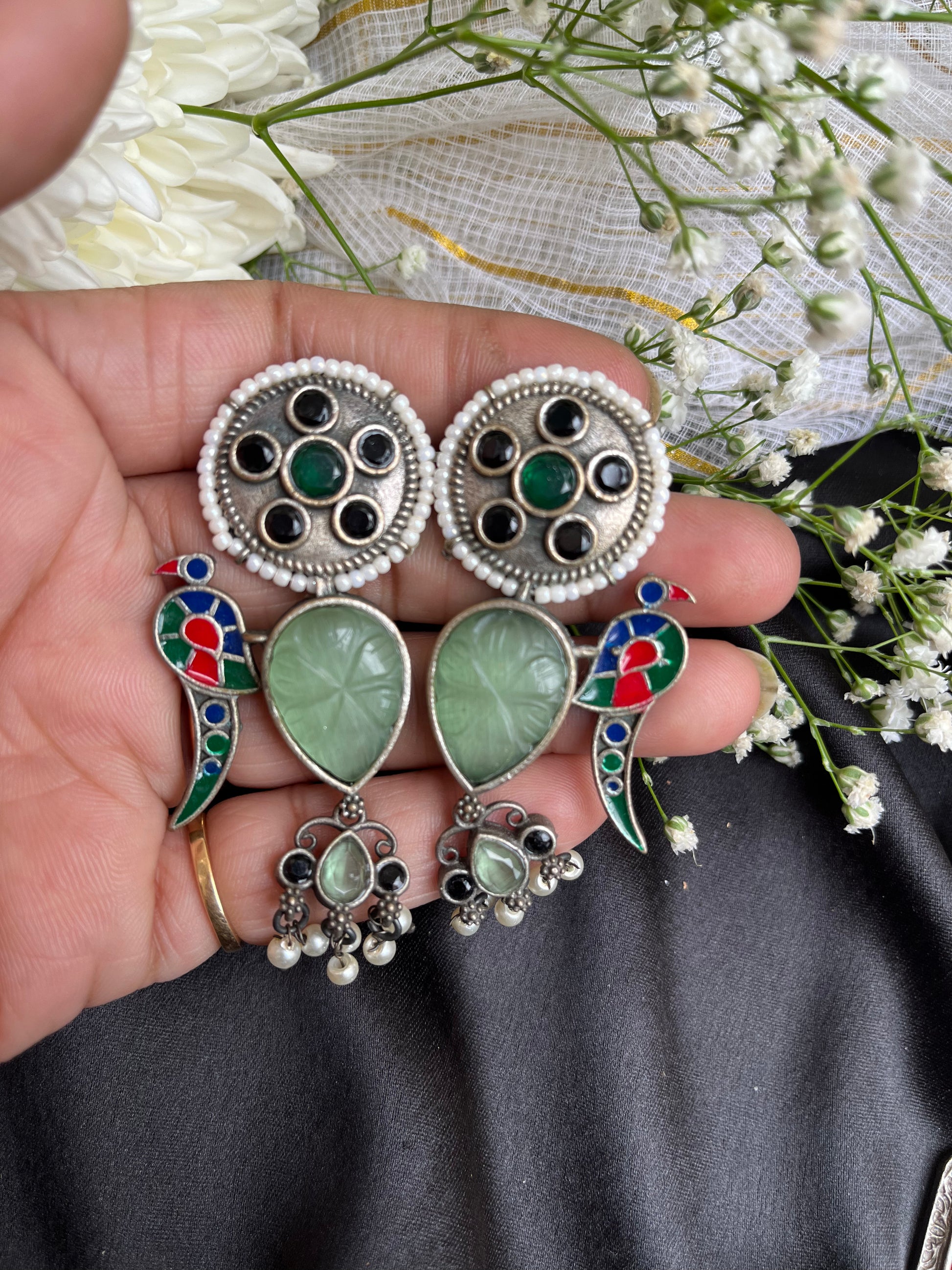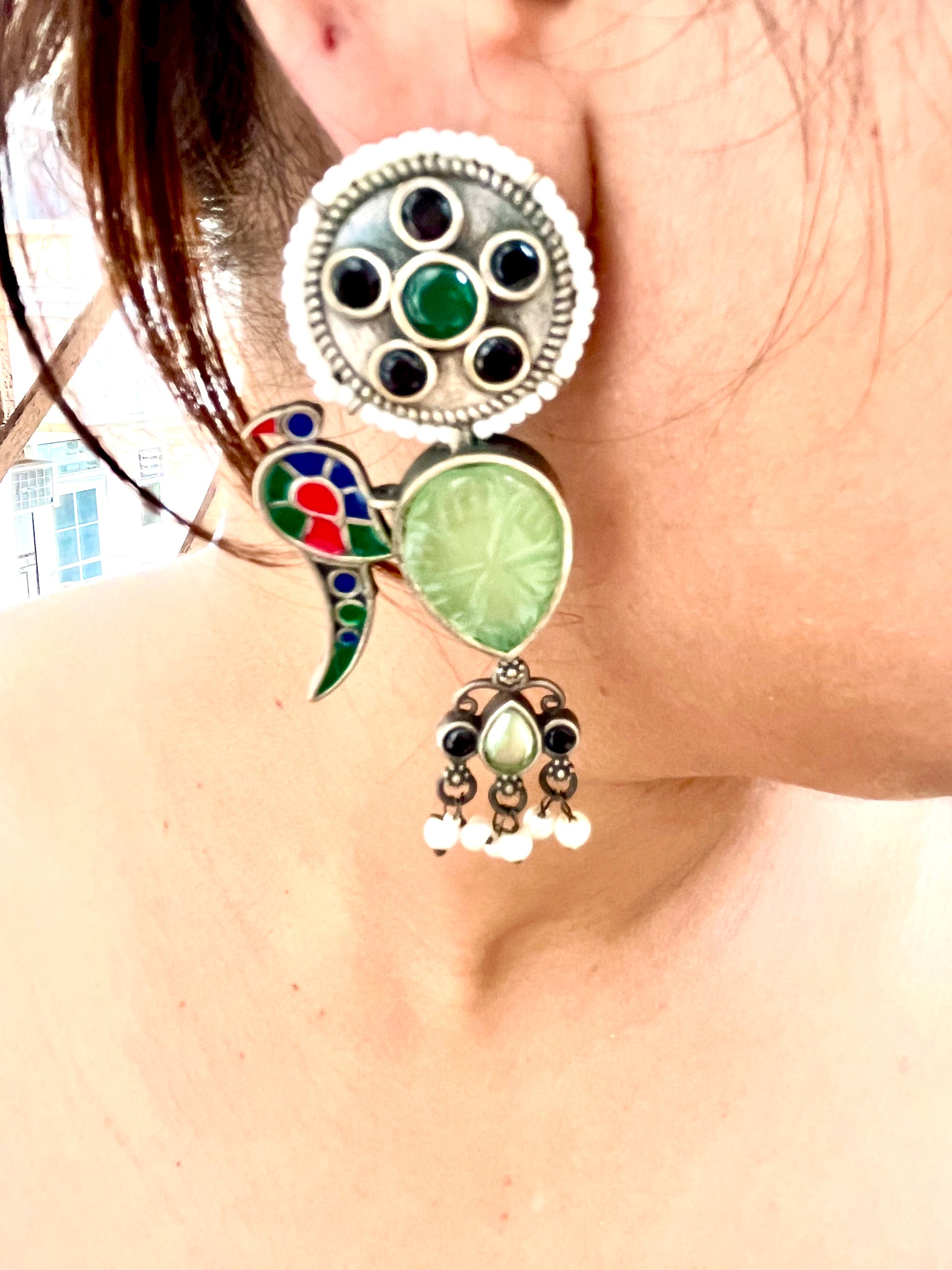 STYLE GUIDE :Oxidised earrings have a unique, rustic appearance that sets them apart from traditional polished metal jewellery. Despite their vintage appearance, oxidised earrings can be remarkably versatile. They can complement a wide range of styles, from bohemian and casual to formal and ethnic, making them suitable for various occasions.