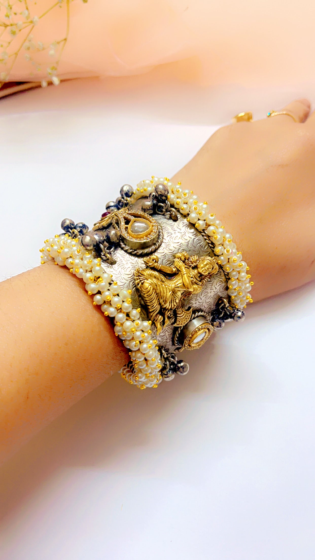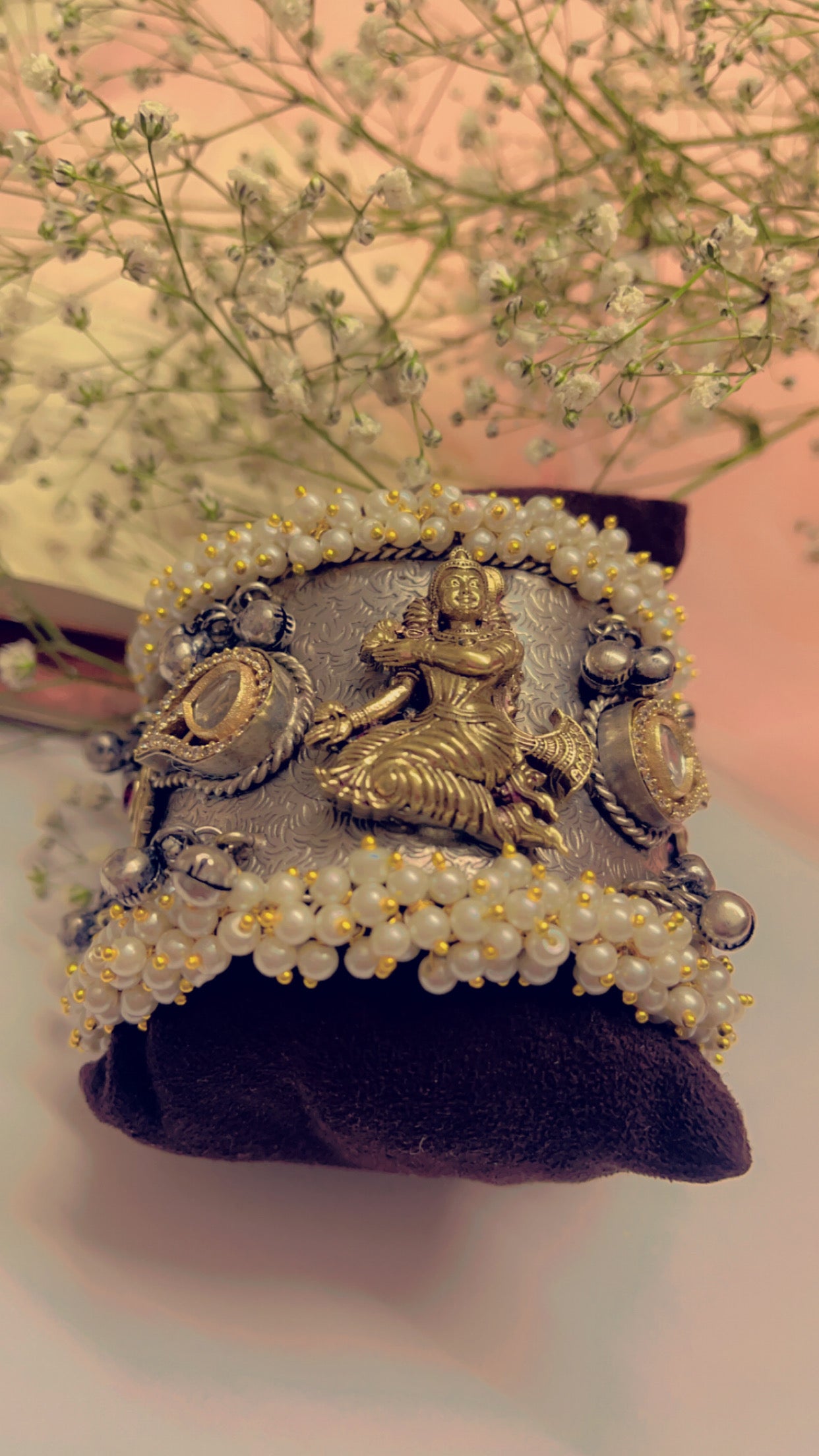 Experience luxury and elegance with our Tamiksha Silver Handcuff. Made with high-quality materials, it features intricate Silver work, adorned with a delicate Flower motif detailing, A beautiful addition to any outfit, perfect for those who appreciate the finer things in life. This bangle adds a touch of boho flair to any outfit. Bold and beautiful, it's the perfect fusion accessory for those looking to make a statement.