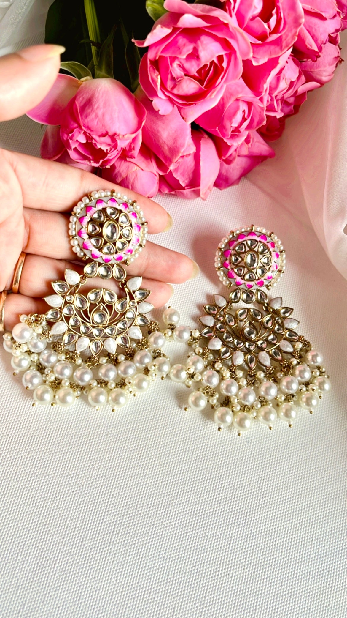 These Earrings are the perfect party accessory. With intricate detailing and a stunning combination of kundan, and stone embellishments, these long earrings are sure to make a statement. Elevate any outfit with these elegant and eye-catching earrings.