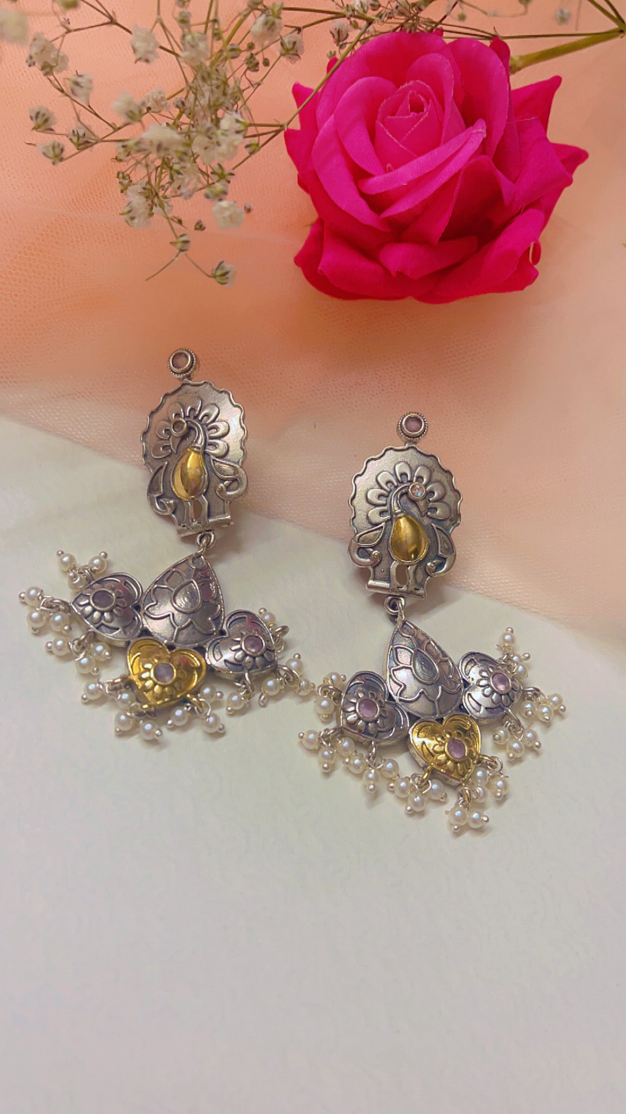 - Material: Brass, stone, Pearl