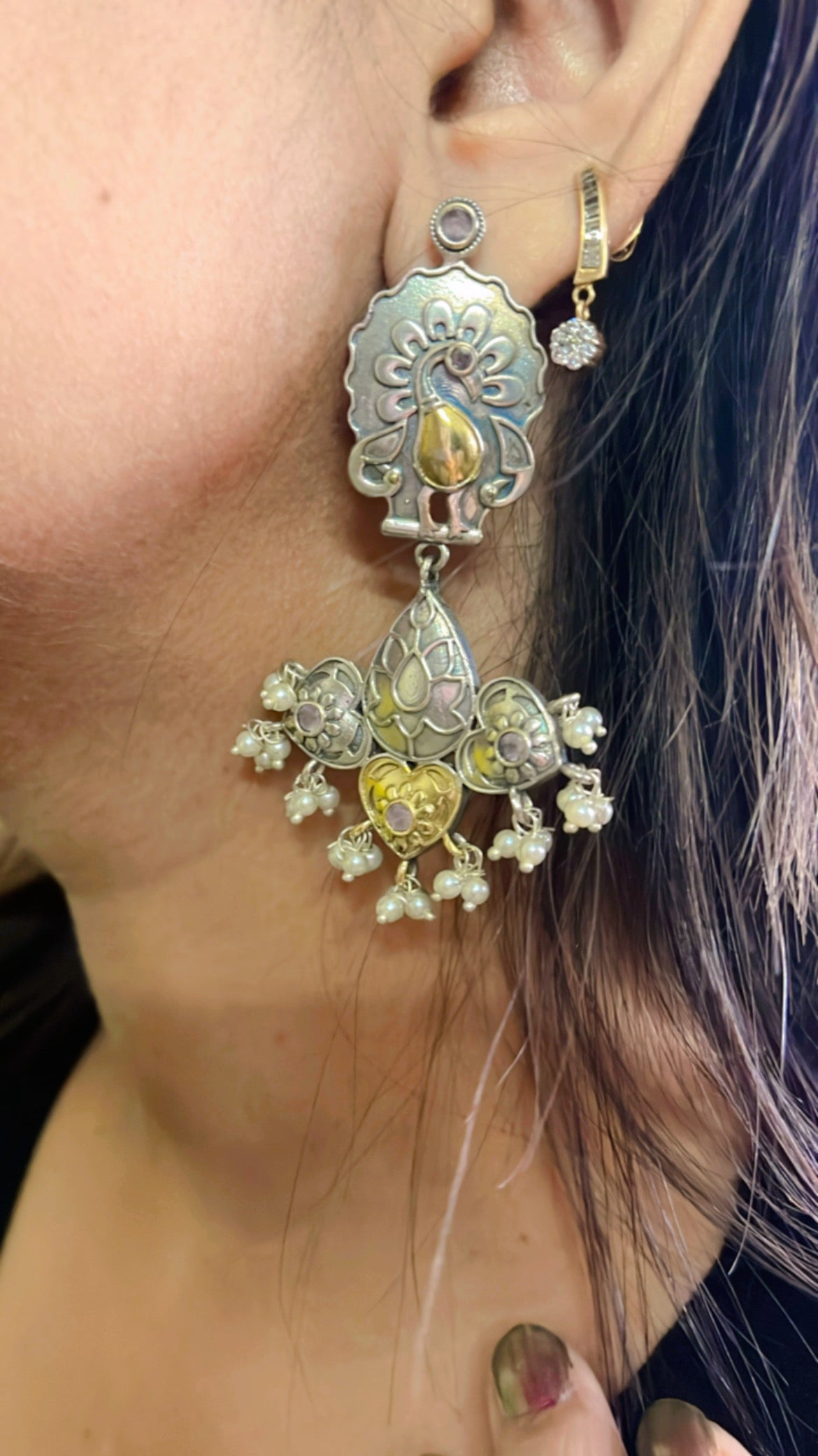 Add a touch of bohemian style with our Rama Silver Earring. The statement design will elevate any outfit, while the silver material adds a touch of elegance. Perfect for those looking to make a stylish statement.