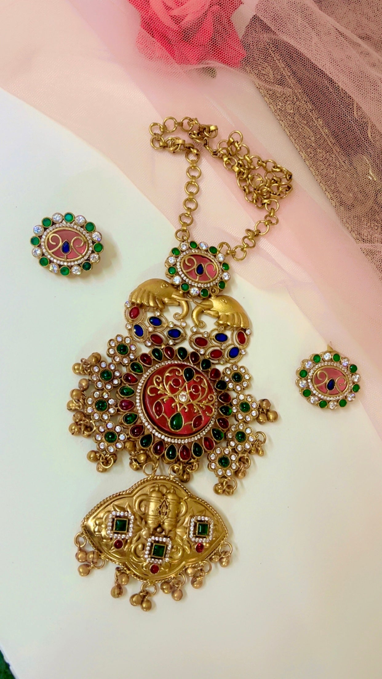 Necklace width - 5.5cm,Pendant length-15 cm Necklace Length- 32cm earring- 3*2cm |