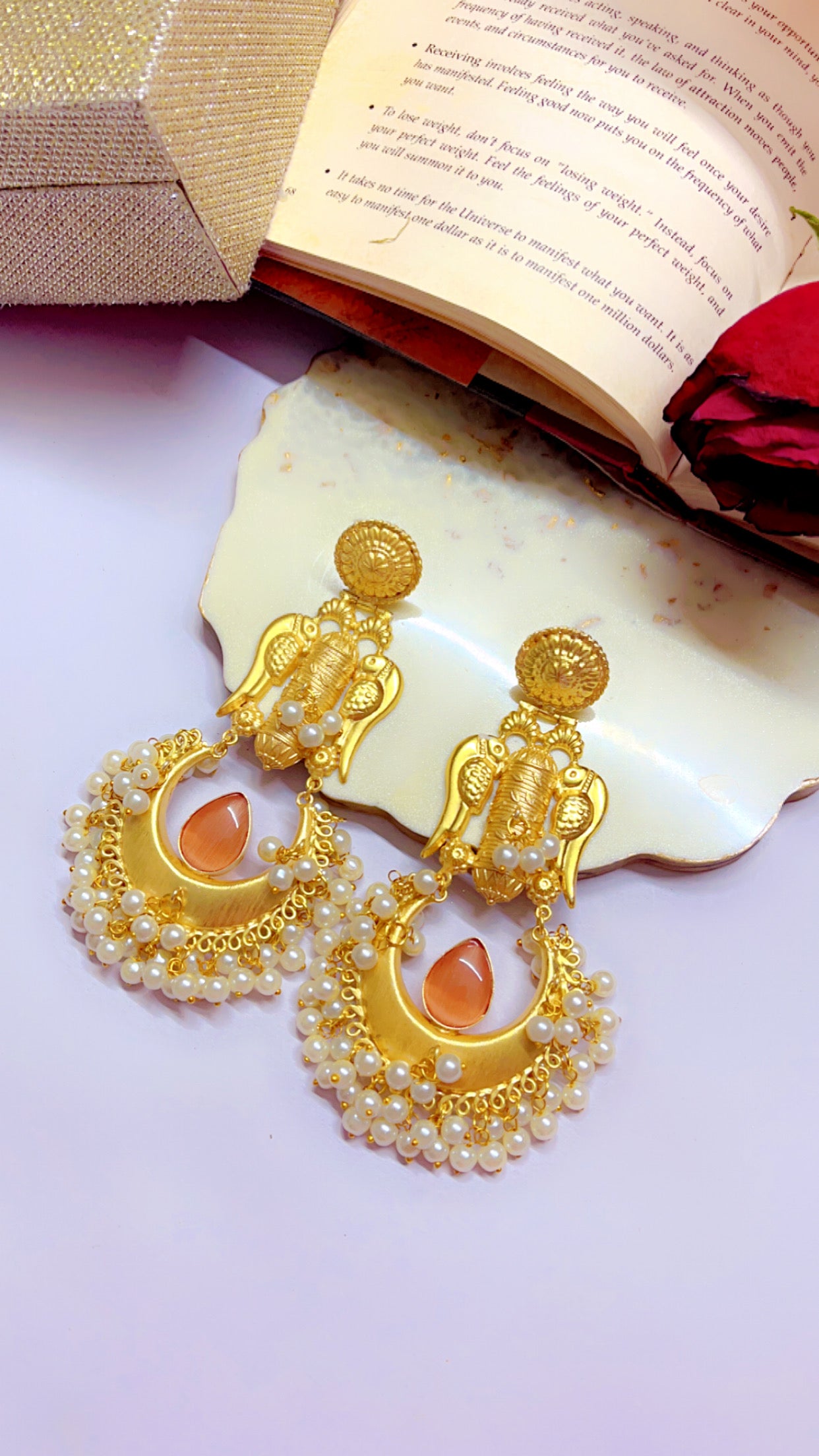 These Earrings are the perfect party accessory. With intricate detailing and a stunning combination of pearl and stone embellishments, these long earrings are sure to make a statement. Elevate any outfit with these elegant and eye-catching earrings.