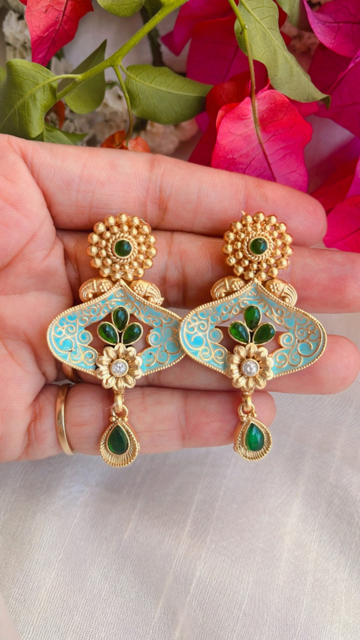 Expertly crafted and beautifully designed, our Heena Meenakari Earrings are a true testament to traditional elegance. With intricate meenakari detailing, these earrings are a must-have for any jewelry collection. Add a touch of cultural charm to your outfit with these stunning earrings.