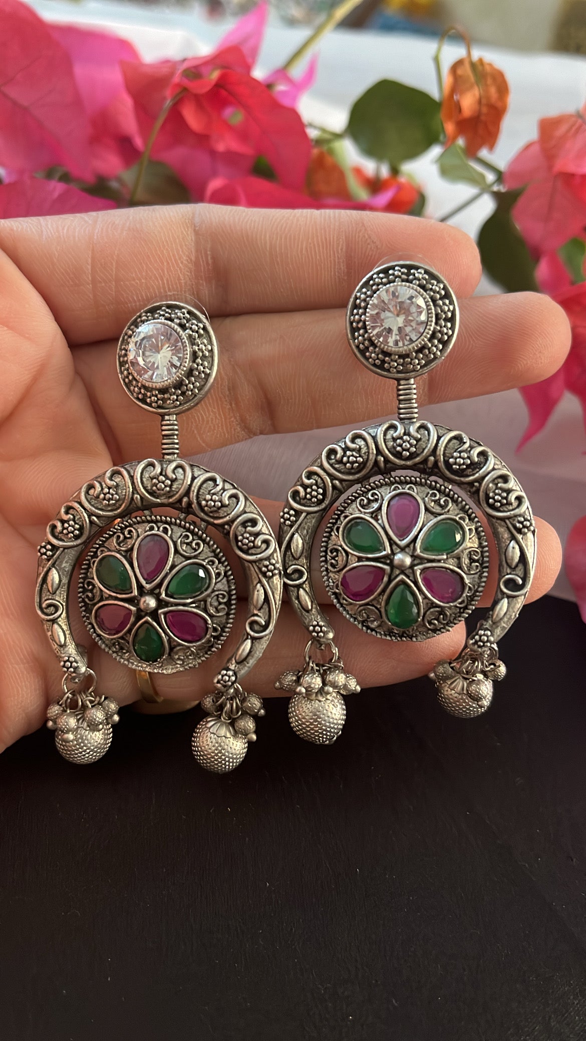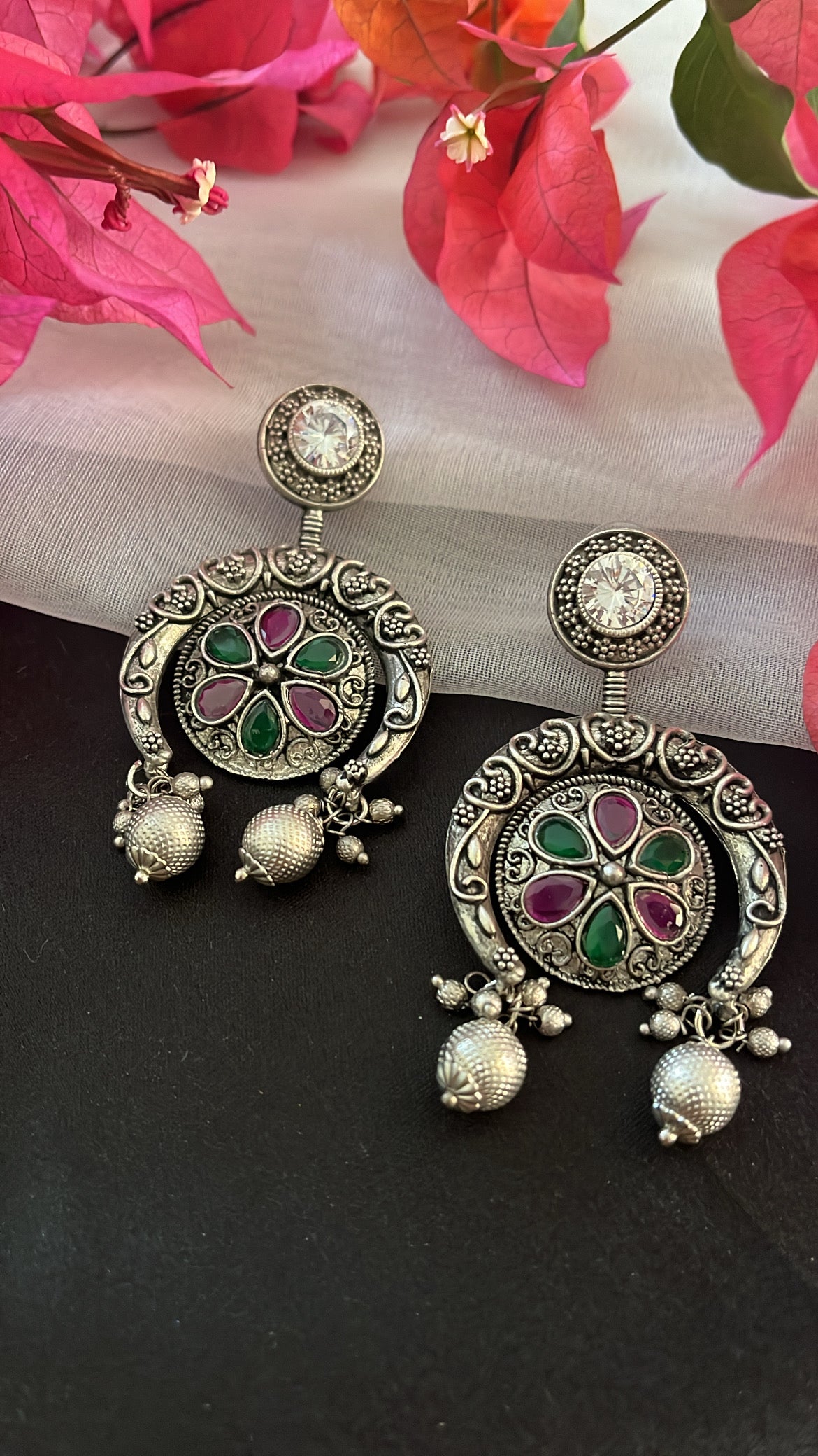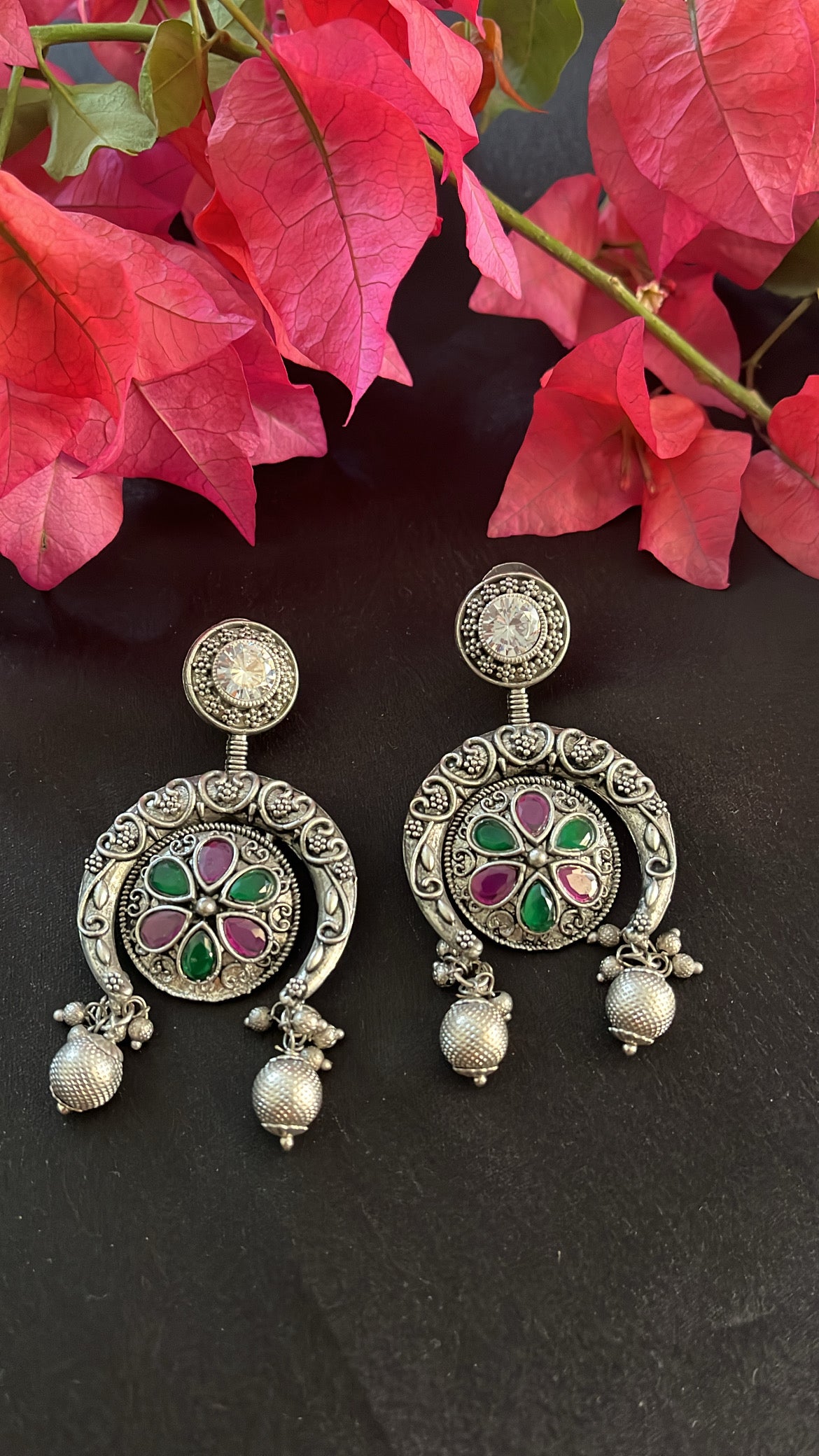 STYLE GUIDE :Oxidised earrings have a unique, rustic appearance that sets them apart from traditional polished metal jewellery. Despite their vintage appearance, oxidised earrings can be remarkably versatile. They can complement a wide range of styles, from bohemian and casual to formal and ethnic, making them suitable for various occasions.