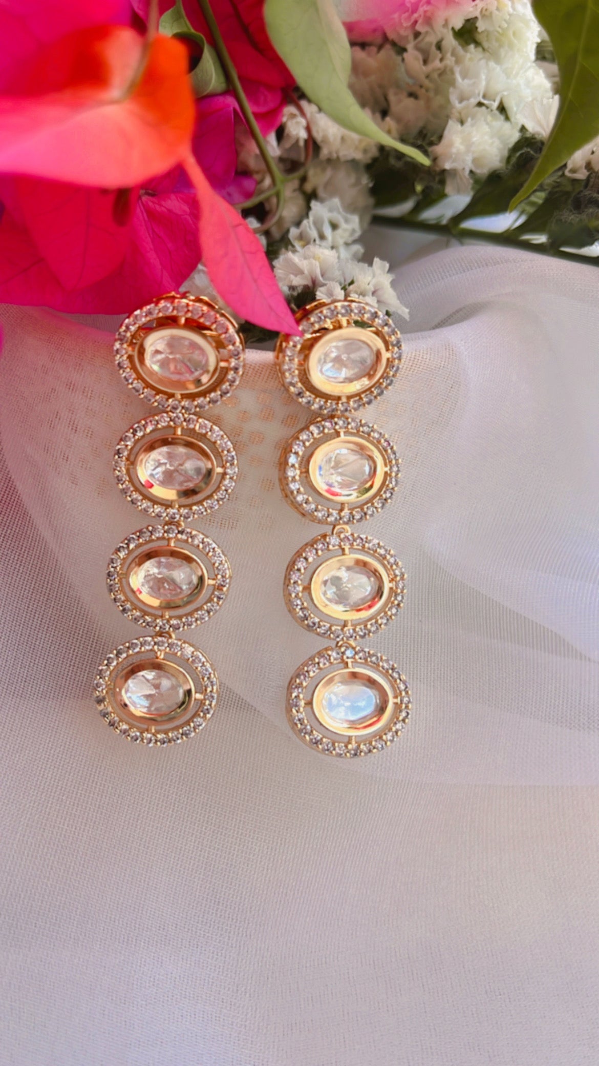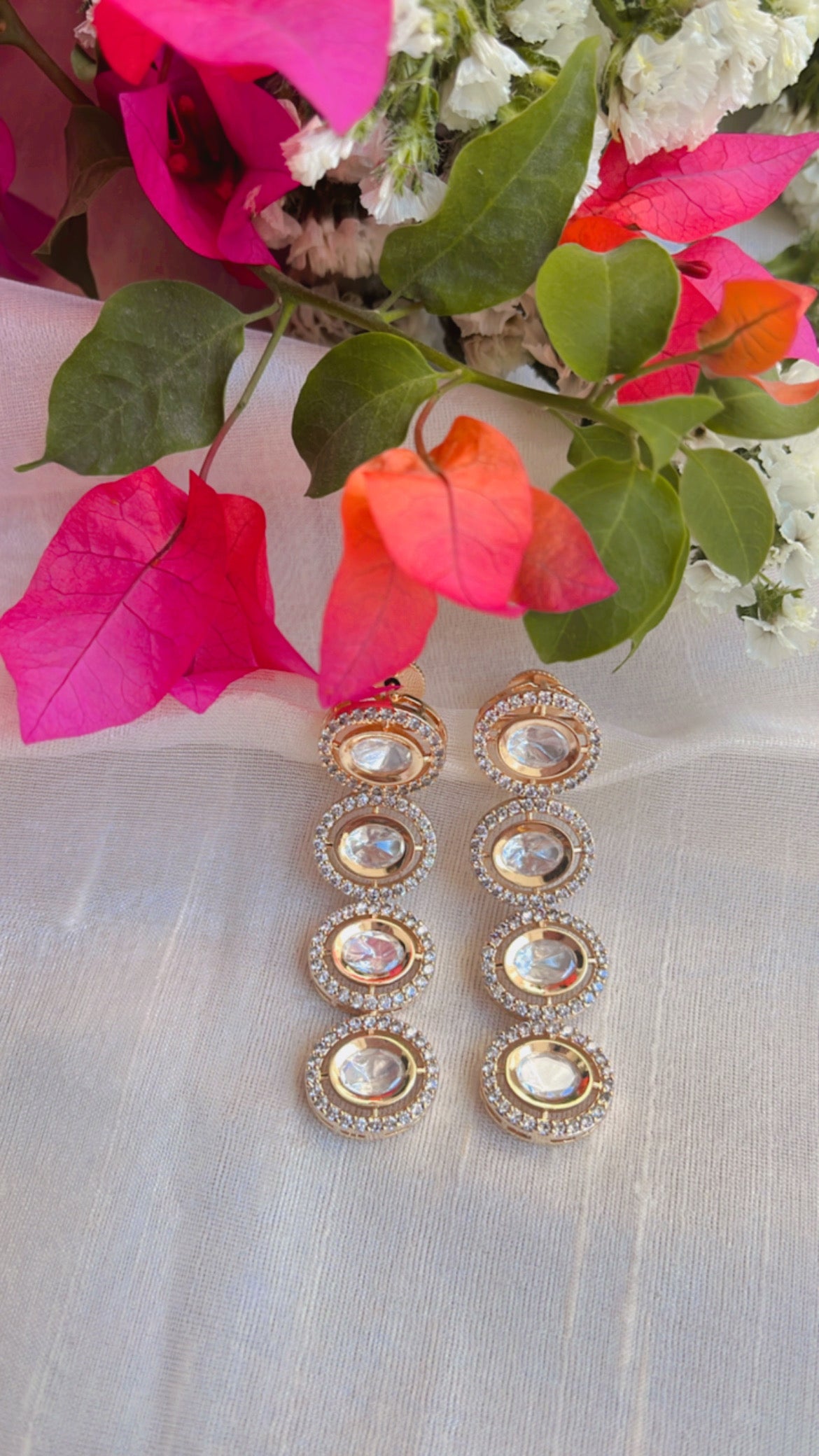 Transform any outfit with our Adaa Polki Earrings. Crafted with high quality polki and ad stones, these earrings are the perfect addition to your jewelry collection. Suitable for any occasion, they effortlessly elevate both western and Indian attire. Upgrade your style with our elegant and versatile earrings.