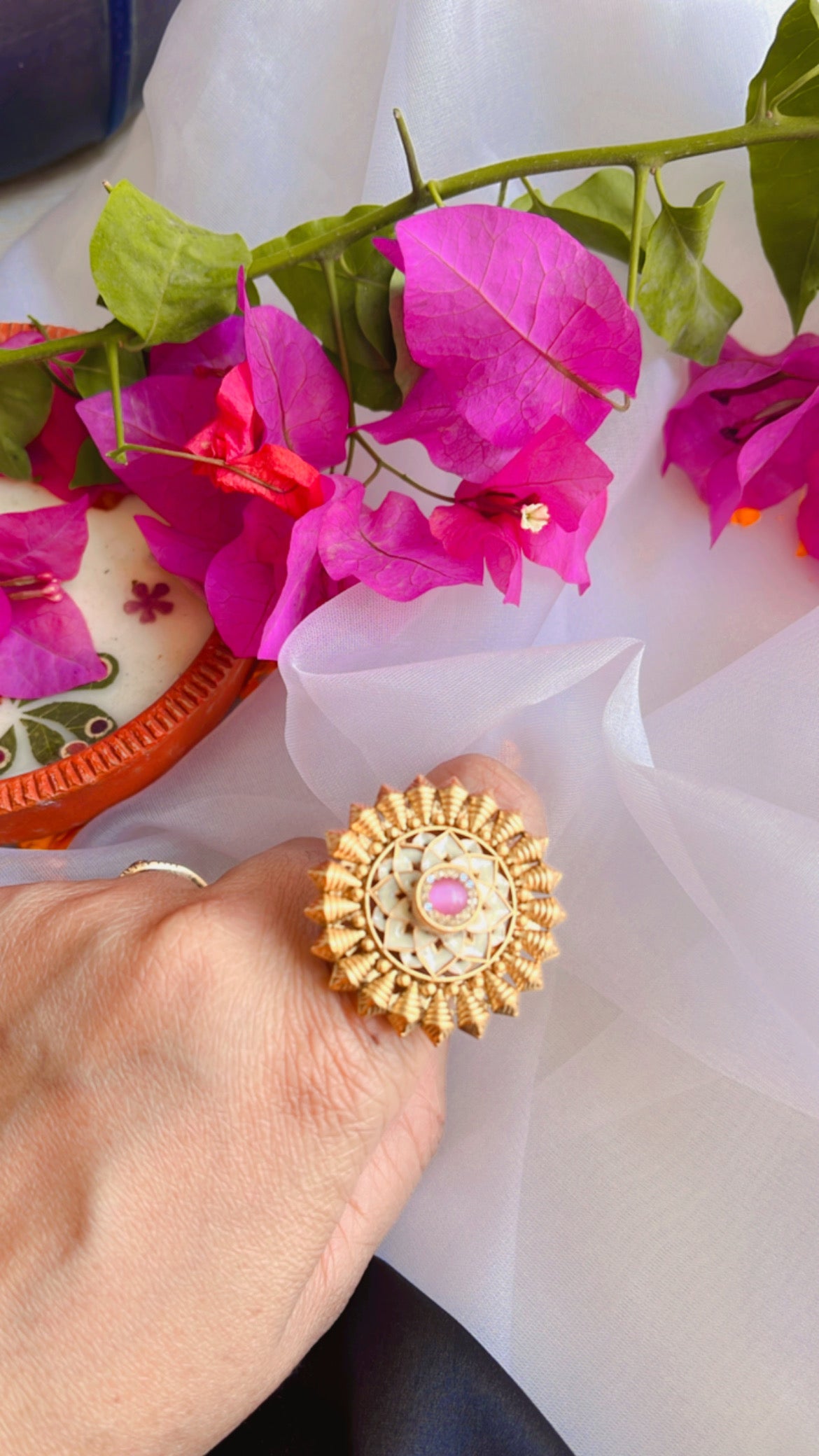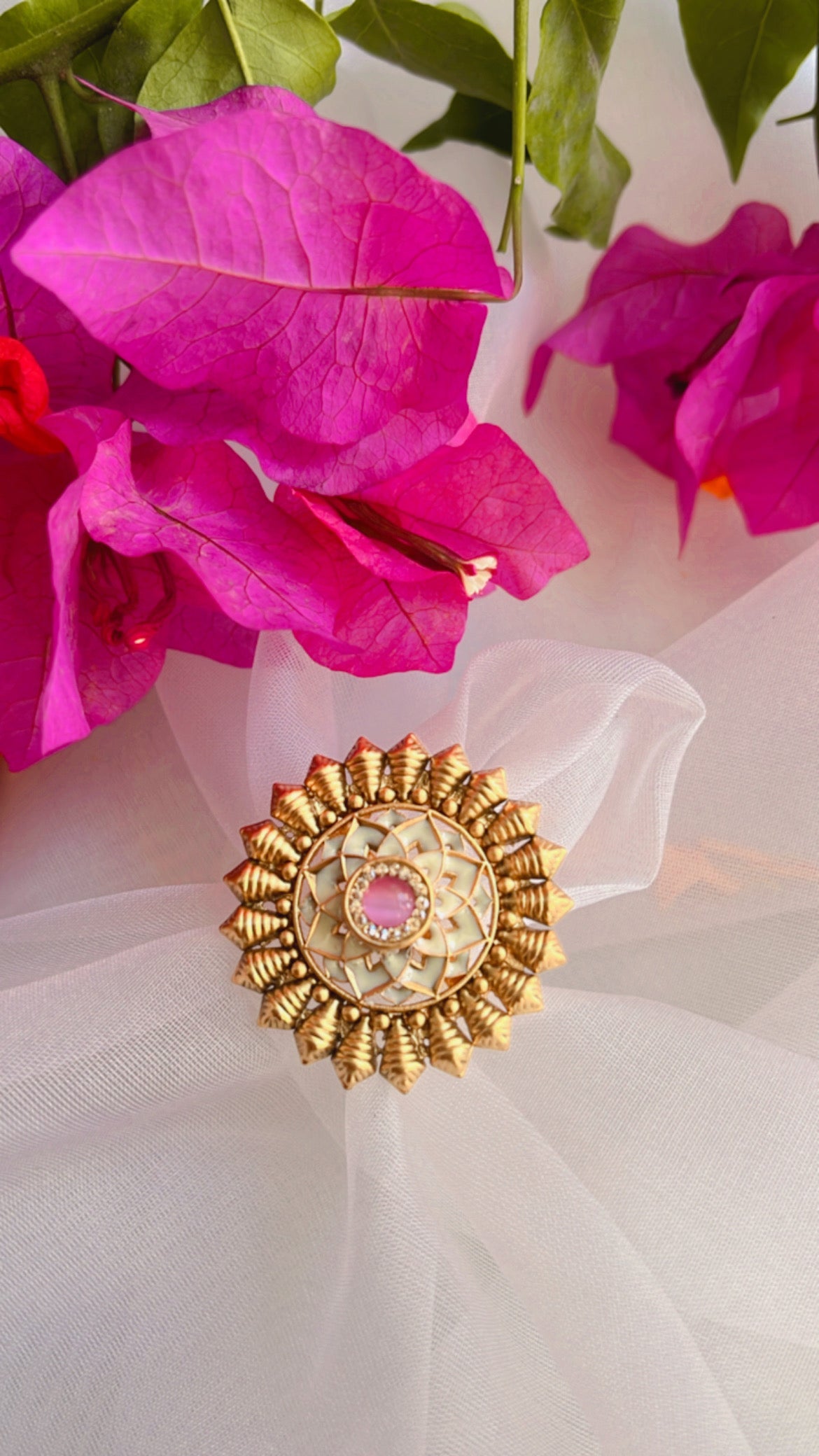 Introducing the Chakrika Ring, a beautiful and traditional piece perfect for any marriage party or special occasion. Make a statement with this stunning ring that is both timeless and eye-catching. Elevate your look with this exquisite piece that is sure to turn heads.