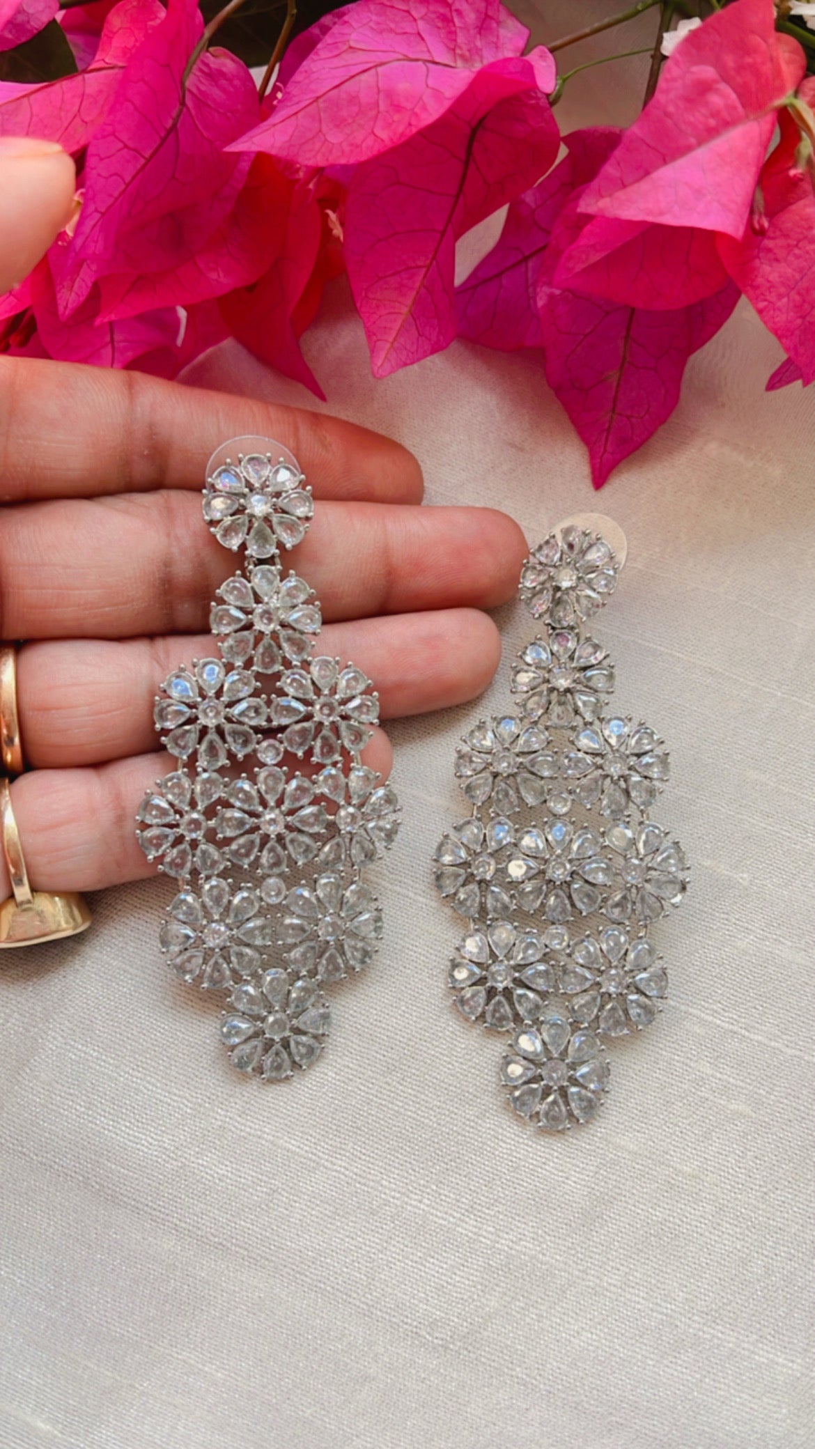 As a product expert, I can confidently state that these Disha Diamond Earrings are the perfect accessory for any special occasion. The diamond finish and ad stones add a touch of elegance, while the silver finish ensures durability. High quality materials make these earrings a must-have for a stunning marriage or party look. Upgrade your style with Disha Diamond Earrings.