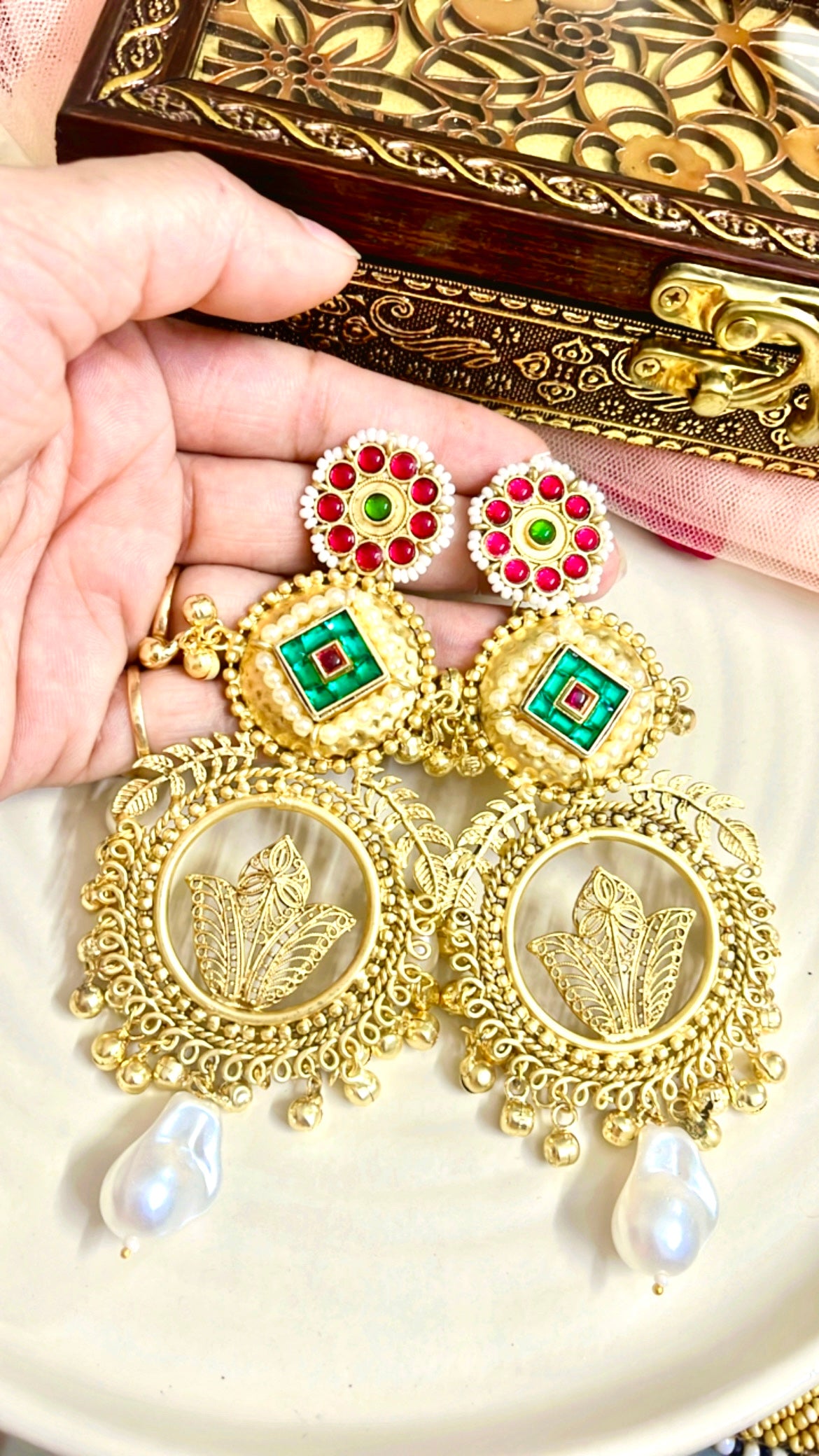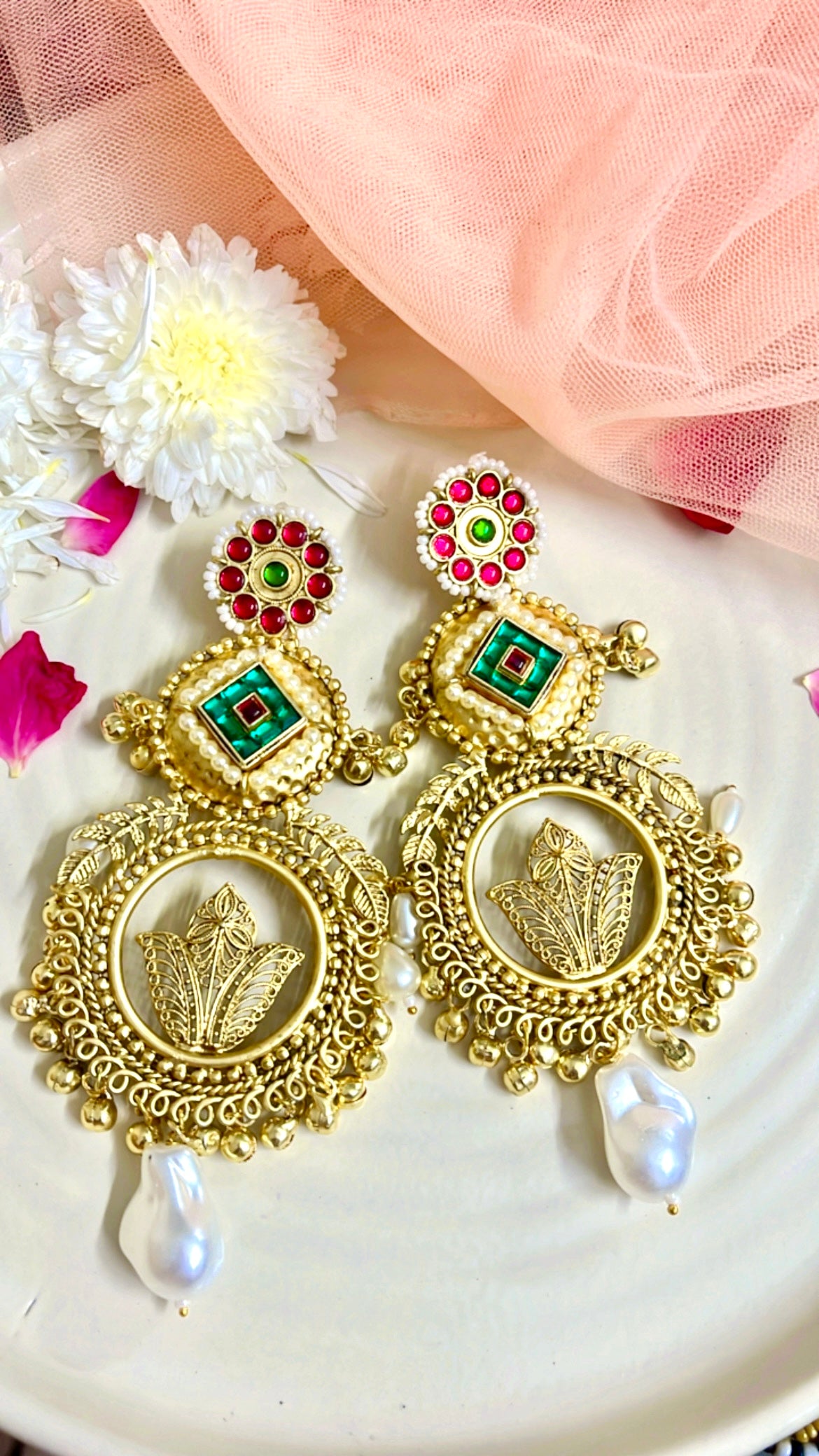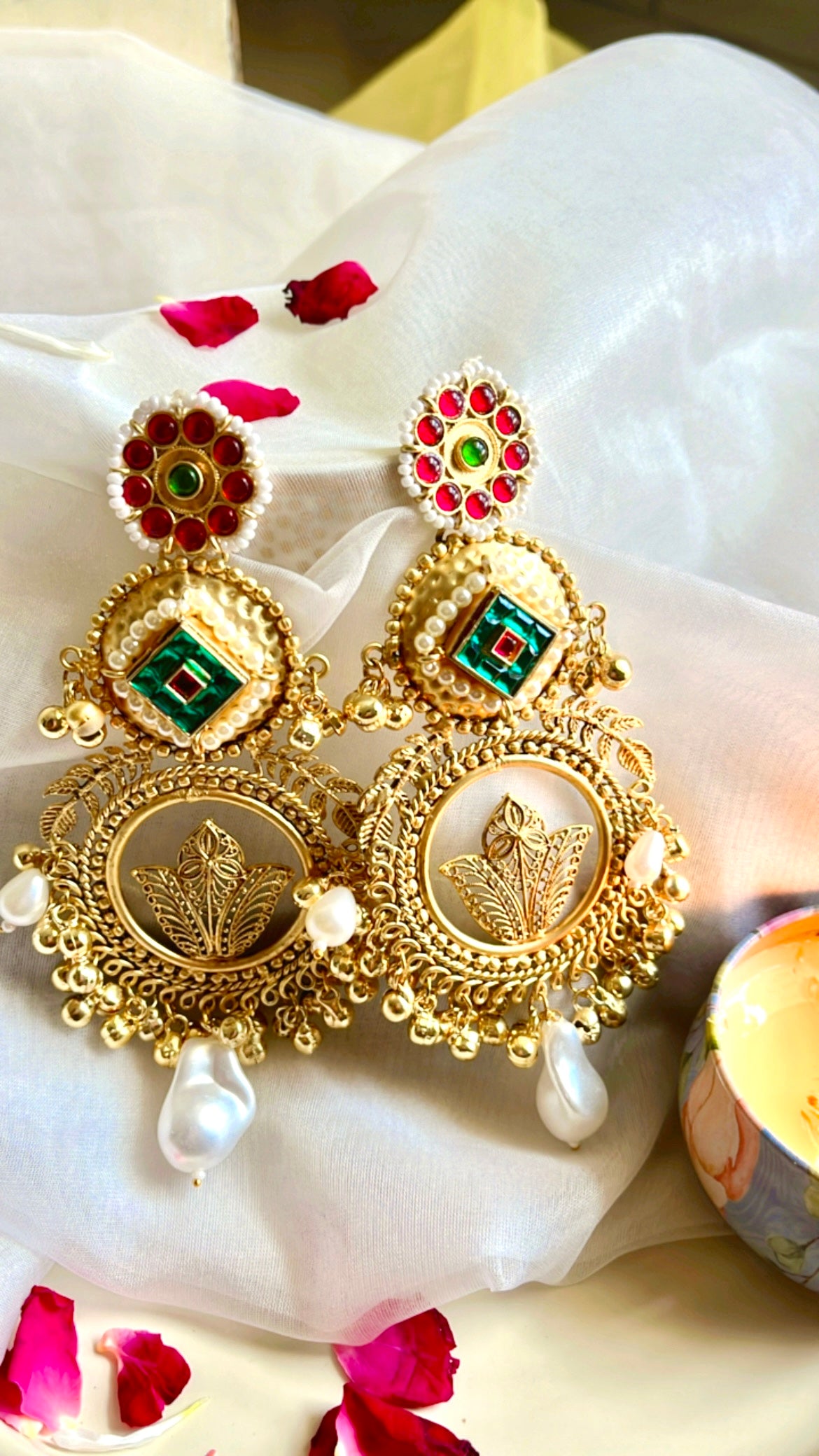 Add a touch of elegance to your look with Apeksha Earrings. These handcrafted statement pieces are carefully crafted and boast a beautiful design that is sure to turn heads. Elevate any outfit with these stunning earrings.