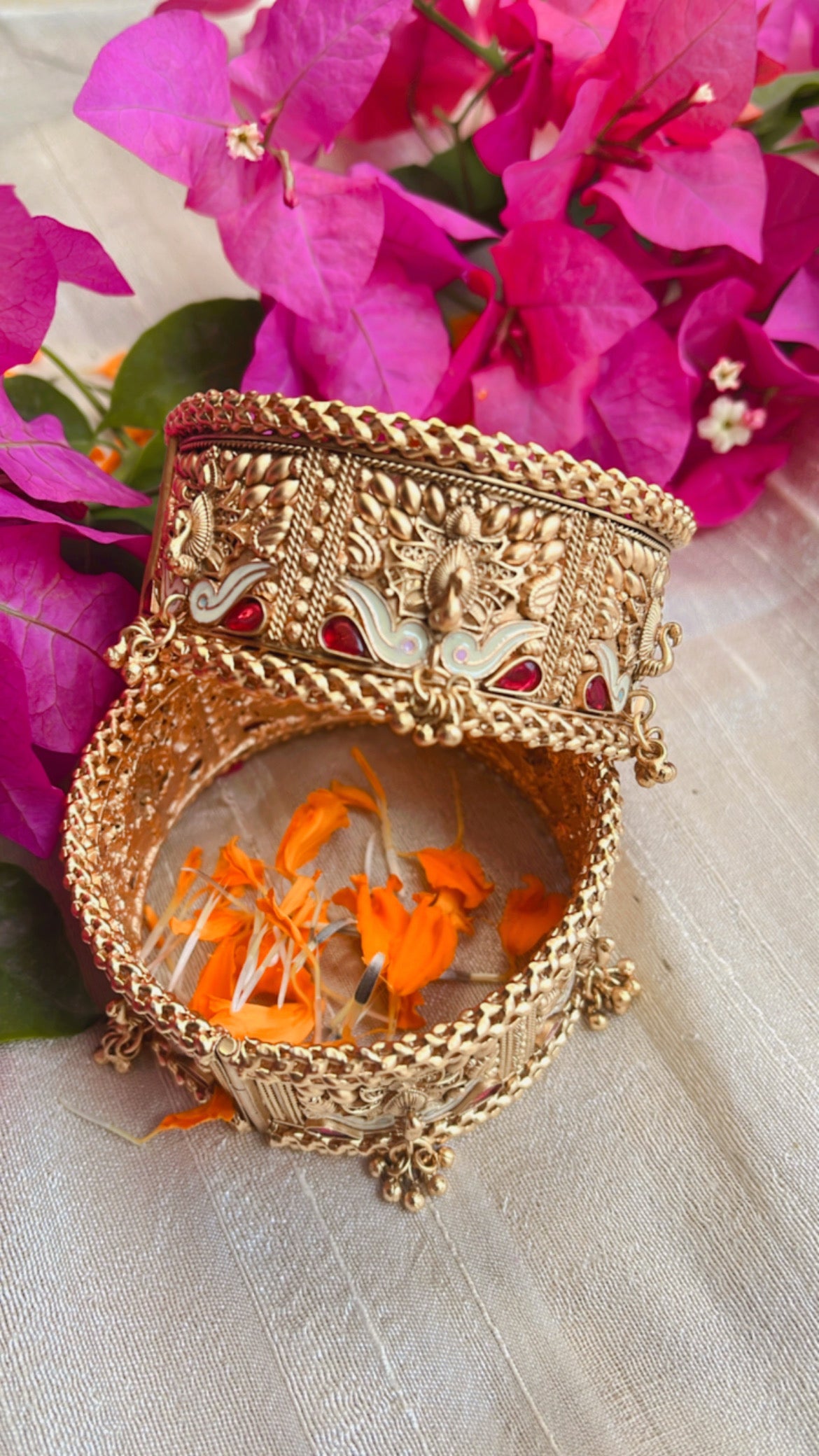 Ethnic golden plated bangles, where timeless elegance meets cultural allure. These stunning wrist ornaments capture the essence of tradition with a touch of opulence. Here's a style tip to help you make a statement with your ethnic golden plated bangles