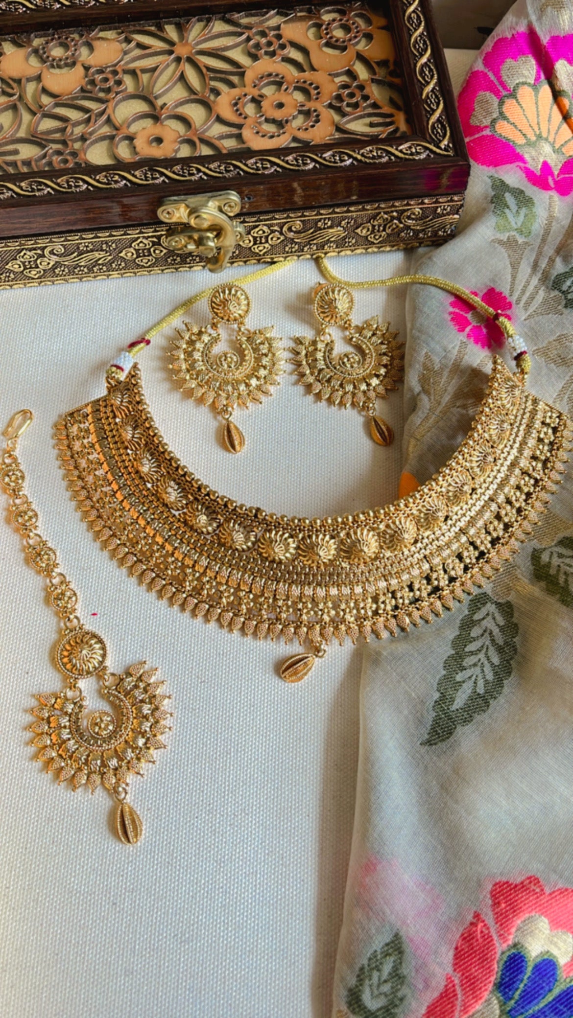 Package Content | 1 neckpiece,1 pair of earring and 1 Mang tikka |
