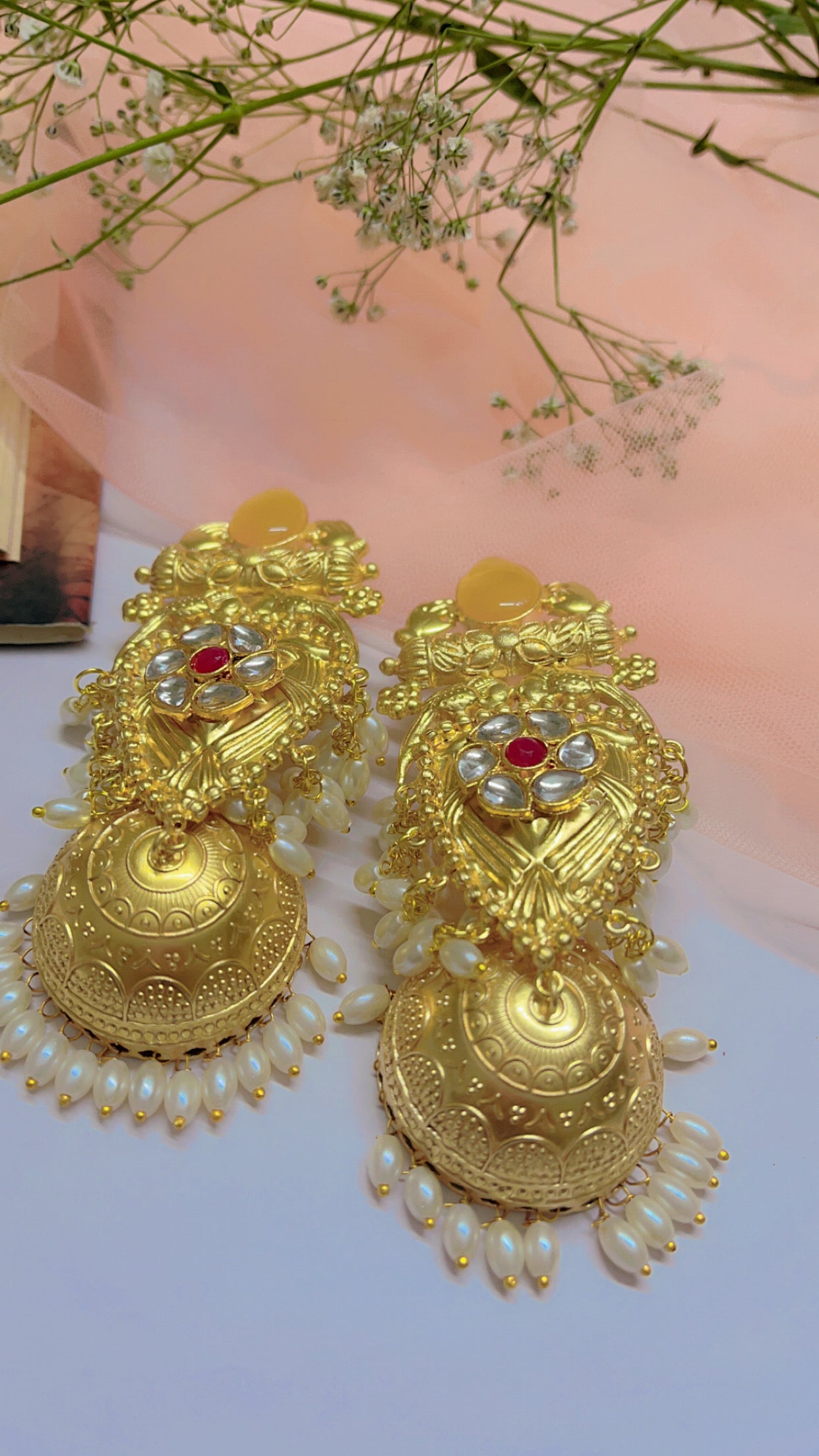 Enhance your style with these elegant Apeksha Earrings. Featuring beautiful pearls and a golden finish, these earrings are perfect for any marriage or festive occasion. Made with high-quality materials, these earrings are ready to elevate any outfit.