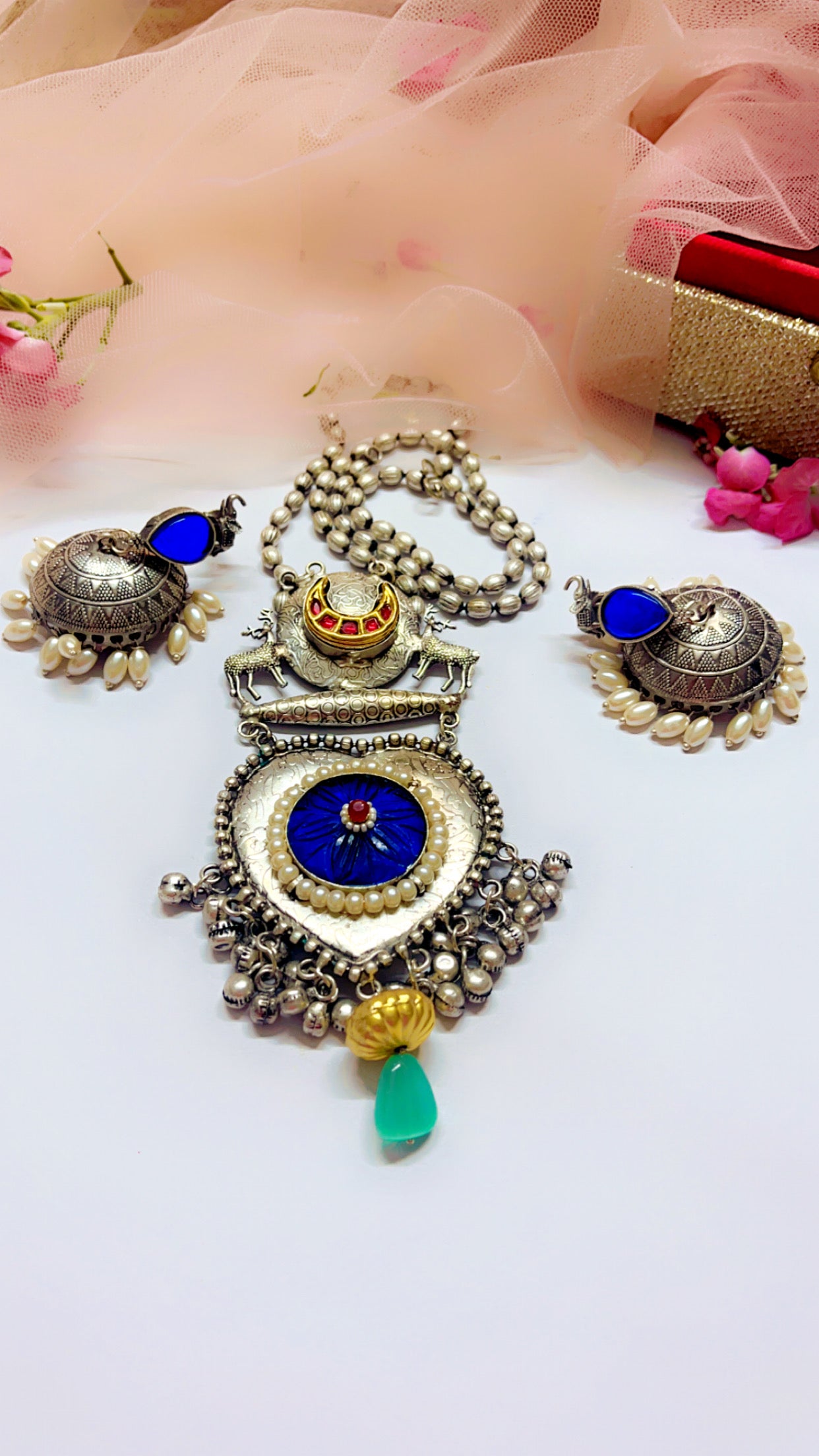 Necklace width - 7cm,Pendant length- 13 cm Necklace Length- 32cm earring- 5.2cm |
