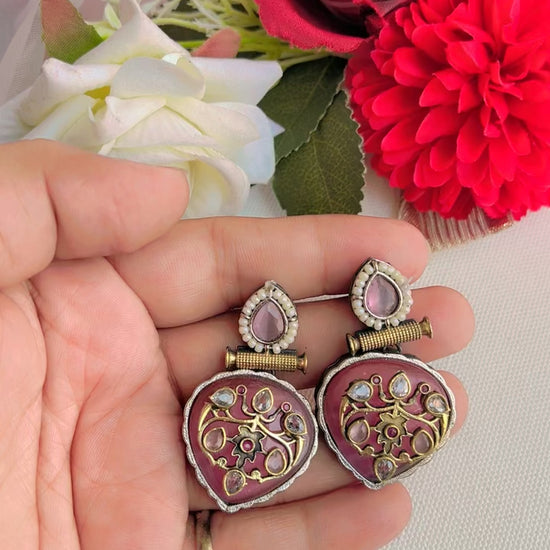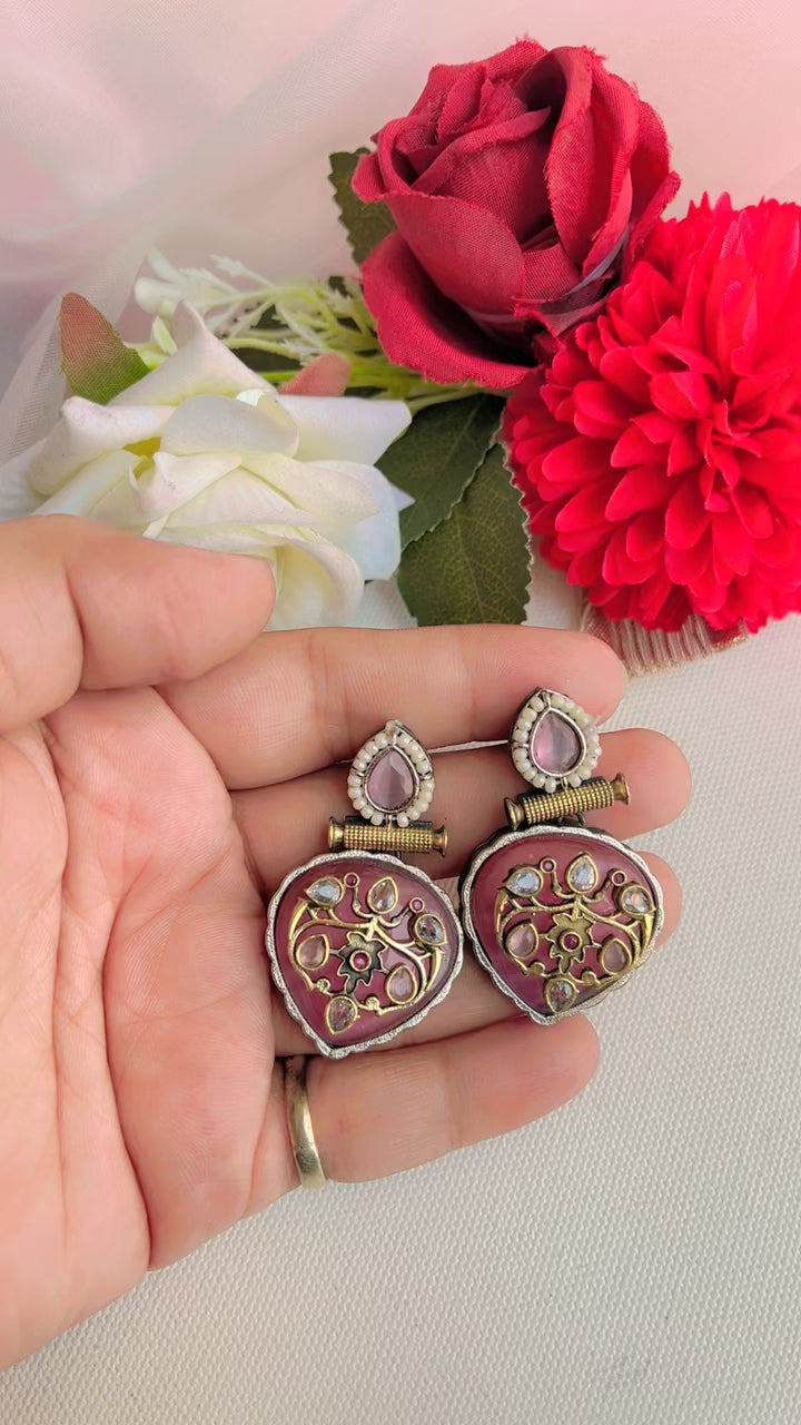 Pink Chehak Silver Earring