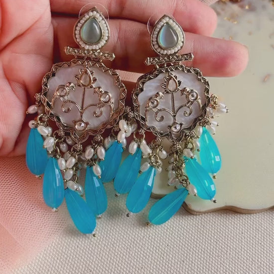 Experience elegance with the Upagya Earring! Adorned with a intricate flower carving on mother of pearl, these earrings are elevated with ruby bead detailing for a touch of sophistication. Embrace the beauty and timeless charm of this stunning accessory.