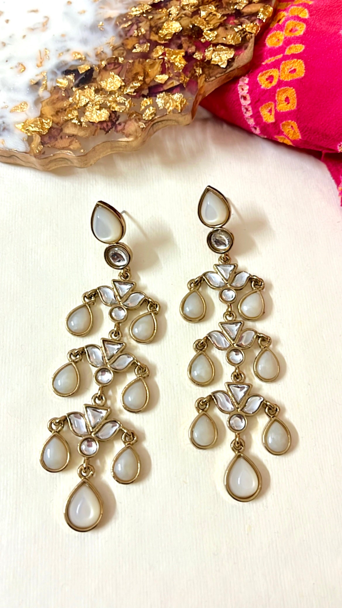 Introducing the Jagnisha Earring, designed to elevate your look with its stunning pearl and kundan embellishment. Make a statement with this elegant and versatile piece, perfect for any occasion. Handcrafted with care, it will surely add a touch of sophistication to your ensemble.