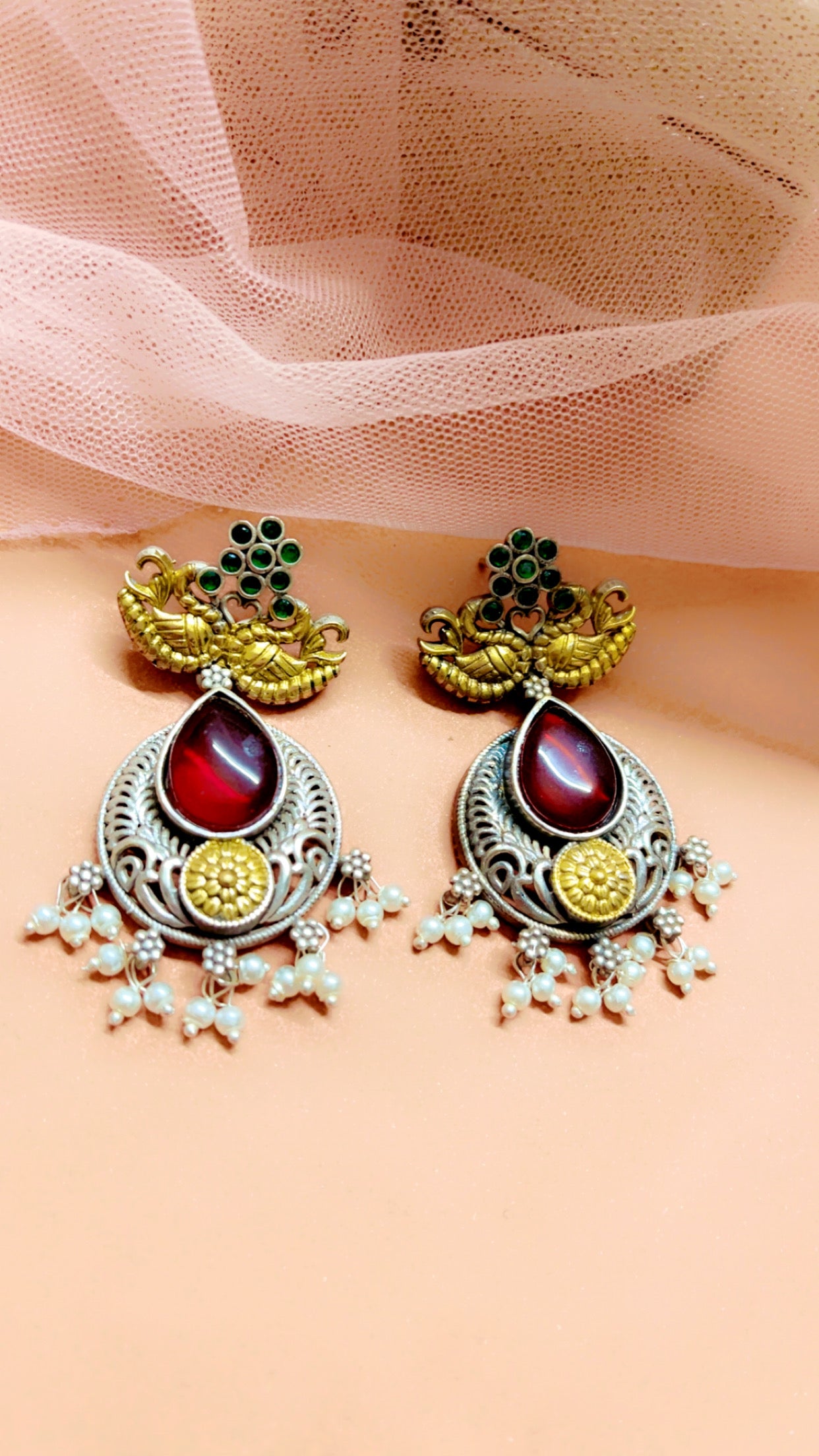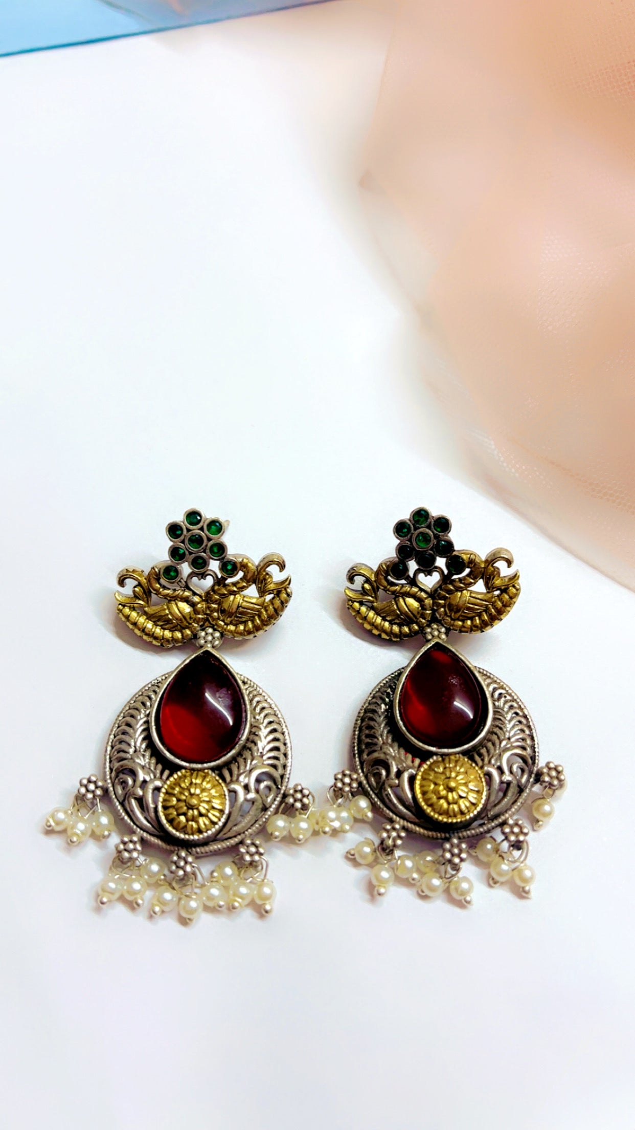 Add a touch of bohemian style with our Jahnvi Earring. The statement design will elevate any outfit, while the silver material adds a touch of elegance. Perfect for those looking to make a stylish statement.