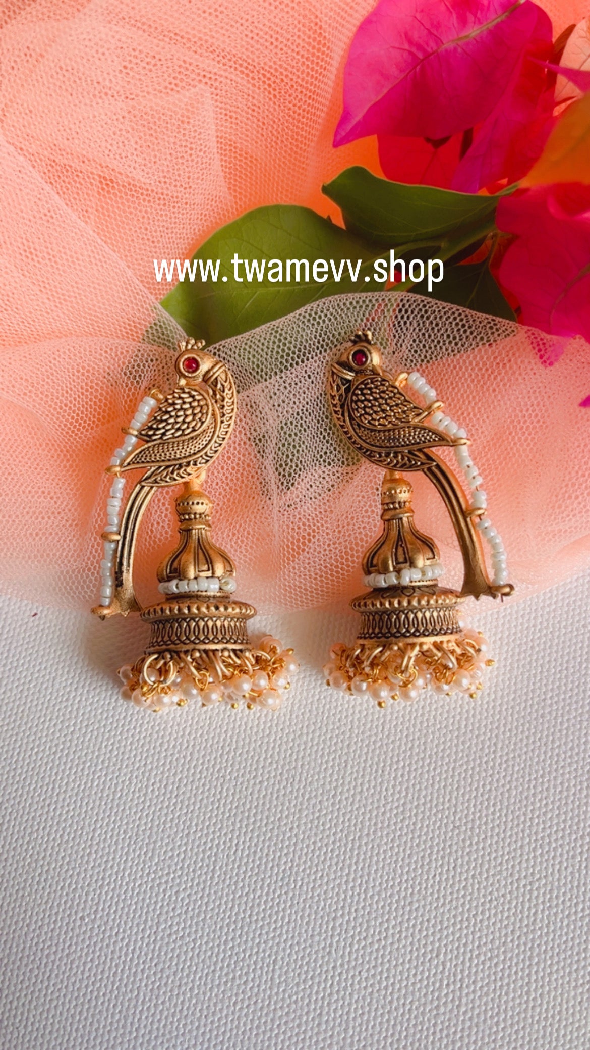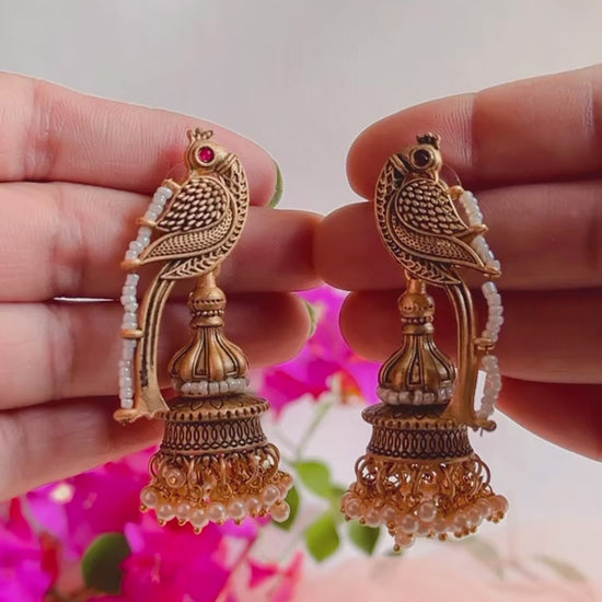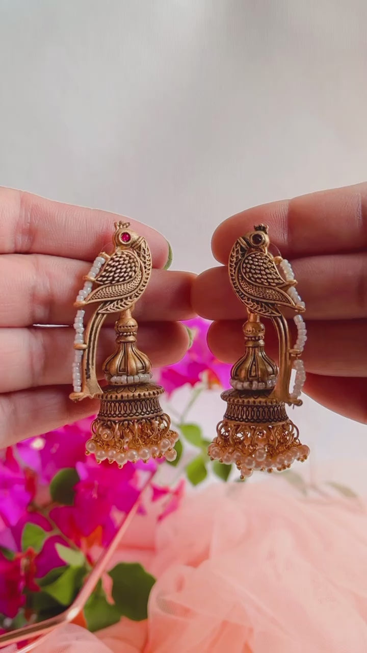 Expertly crafted with a simple and elegant design, the Nitya Earring features a delicate bird motif adorned with lustrous pearls. Perfect for any occasion, these earrings add a touch of sophistication to your look. Trust in our quality and attention to detail for a beautiful accessory.