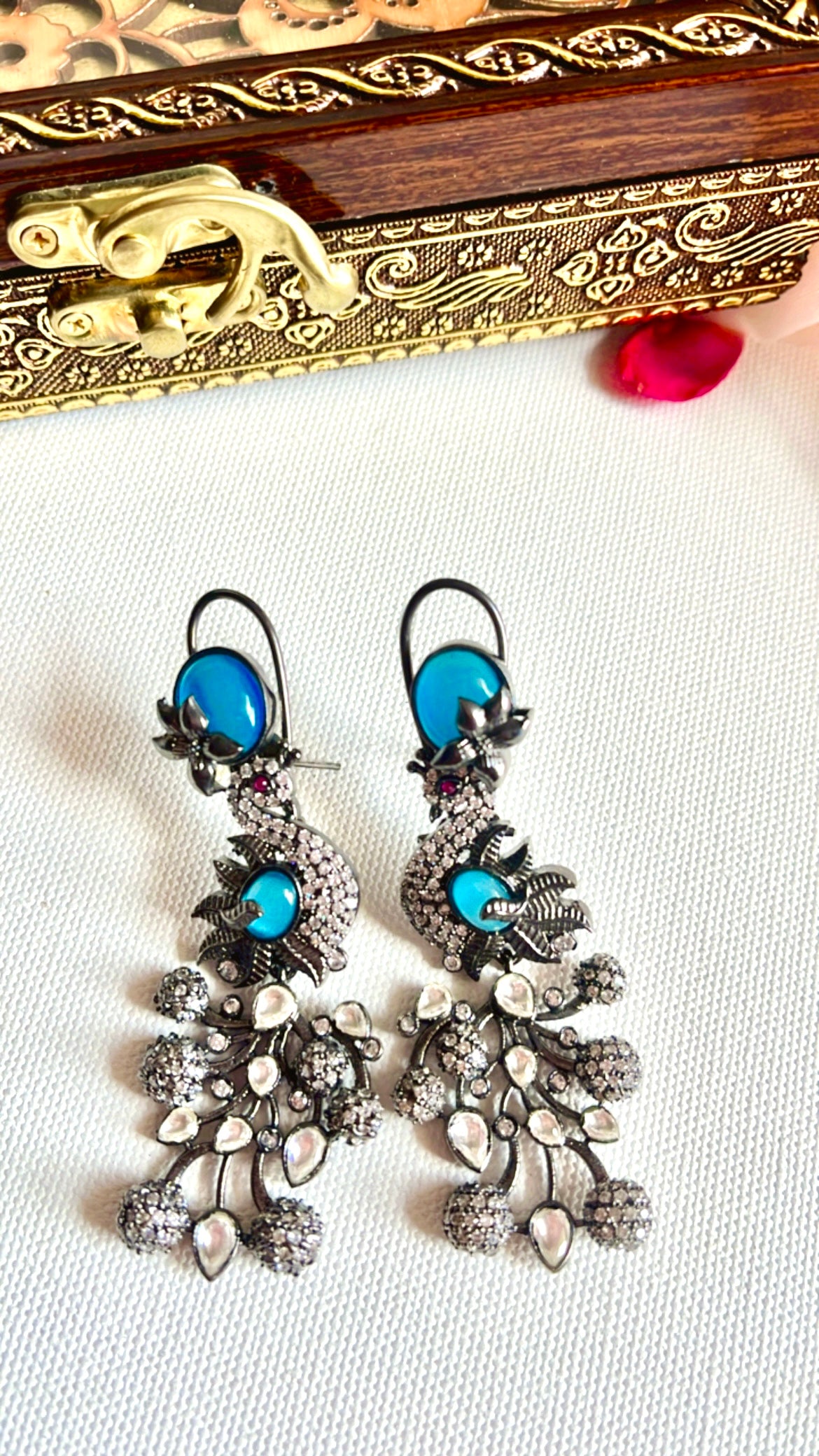 Unleash your inner glam with our Blue Mohini Earrings. Adorned with stones, these earrings are perfect for parties and festive occasions. Elevate your style and make a statement with these stunning earrings.