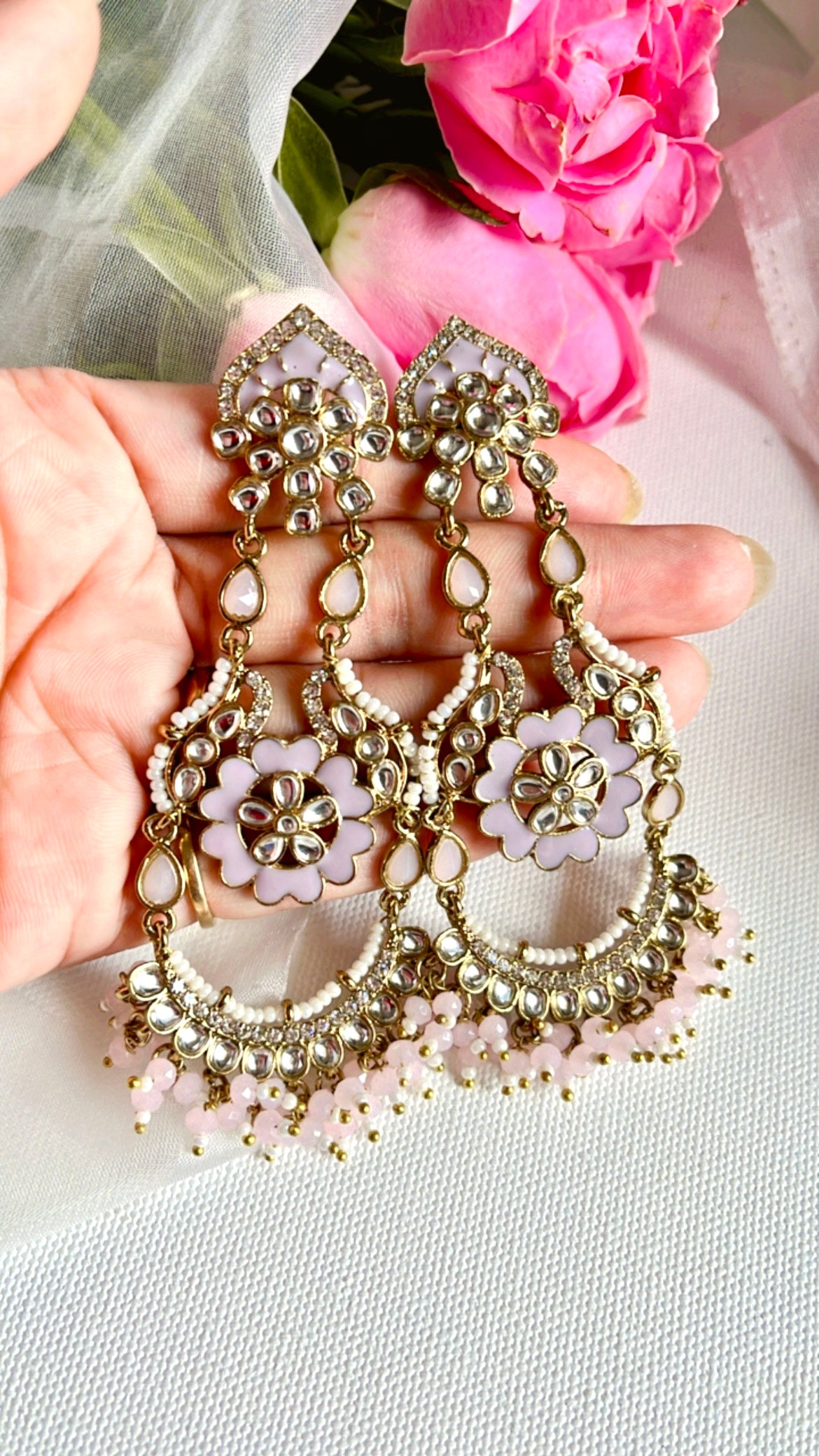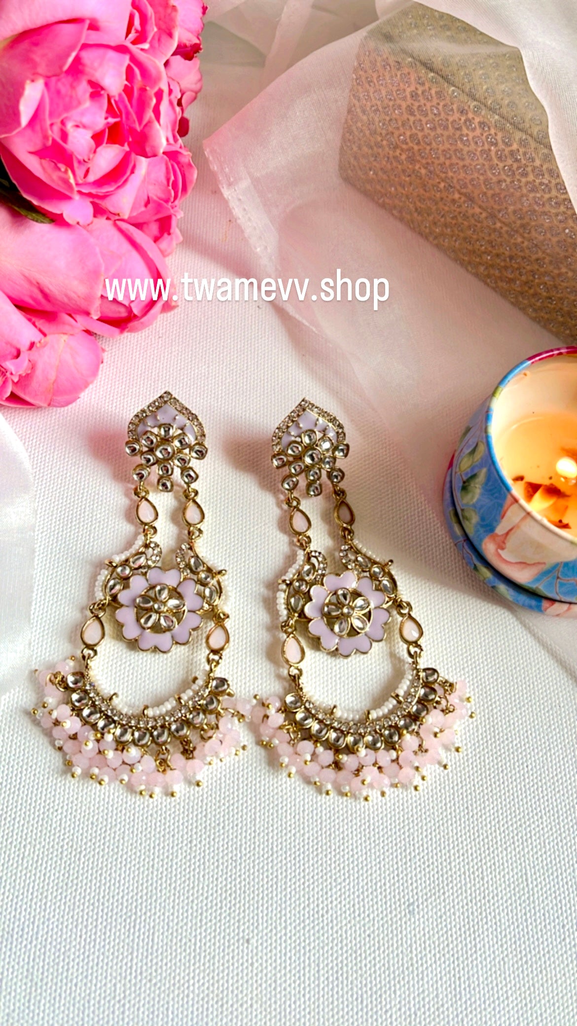 These Tia Earrings are the perfect party accessory. With intricate detailing and a stunning combination of pearl, and pink embellishments, these long earrings are sure to make a statement. Elevate any outfit with these elegant and eye-catching earrings.