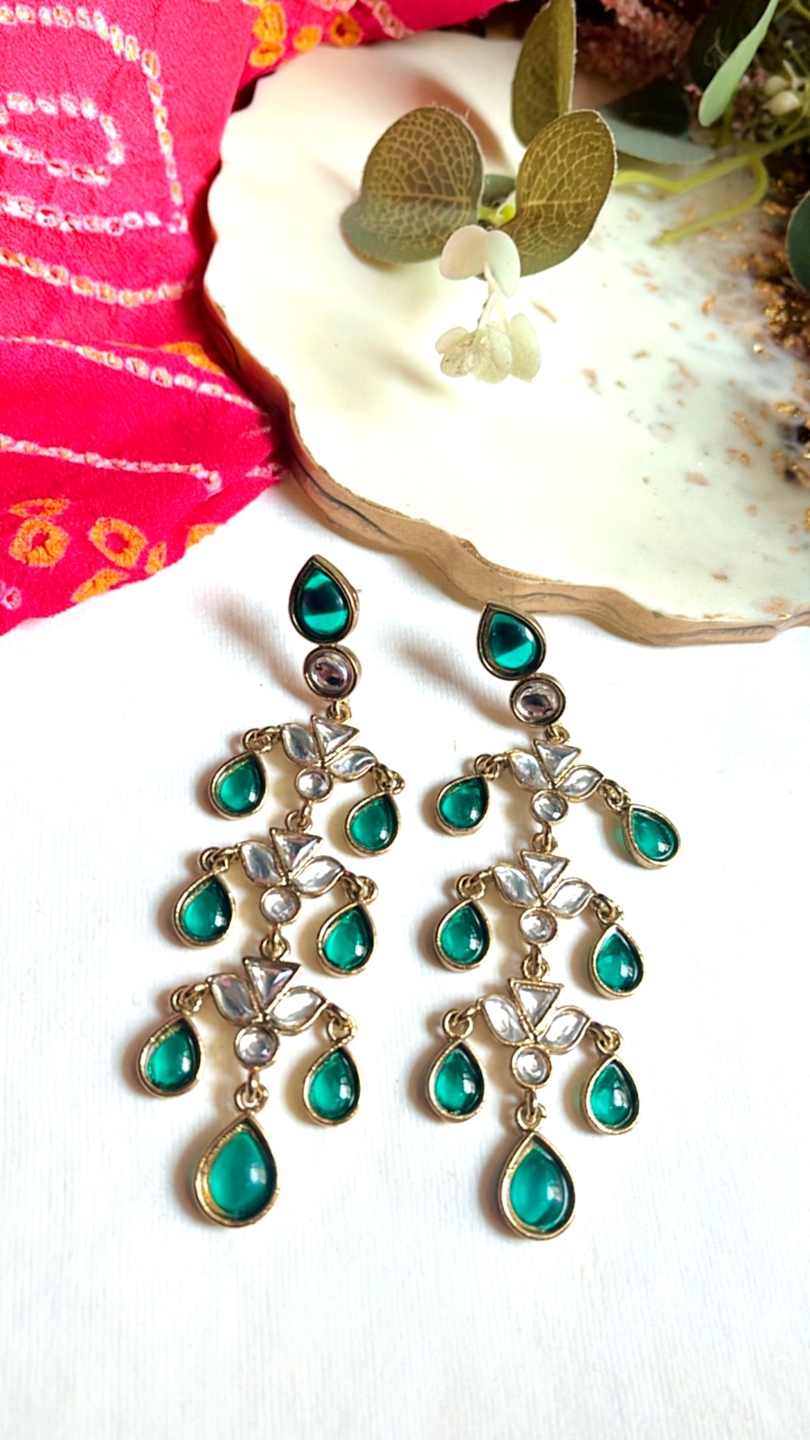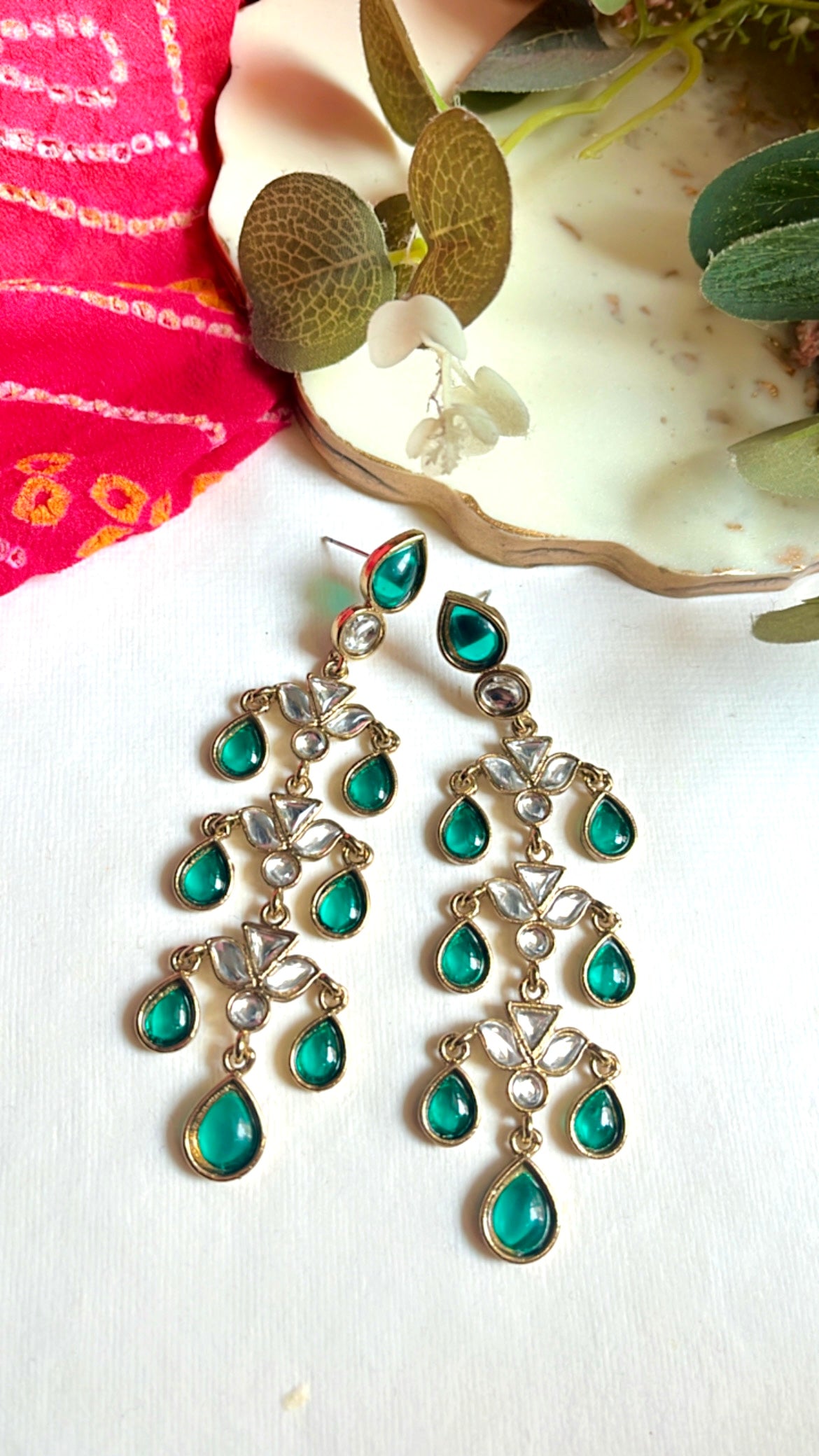 Introducing the Green Jagnisha Earring, designed to elevate your look with its stunning pearl and kundan embellishment. Make a statement with this elegant and versatile piece, perfect for any occasion. Handcrafted with care, it will surely add a touch of sophistication to your ensemble.