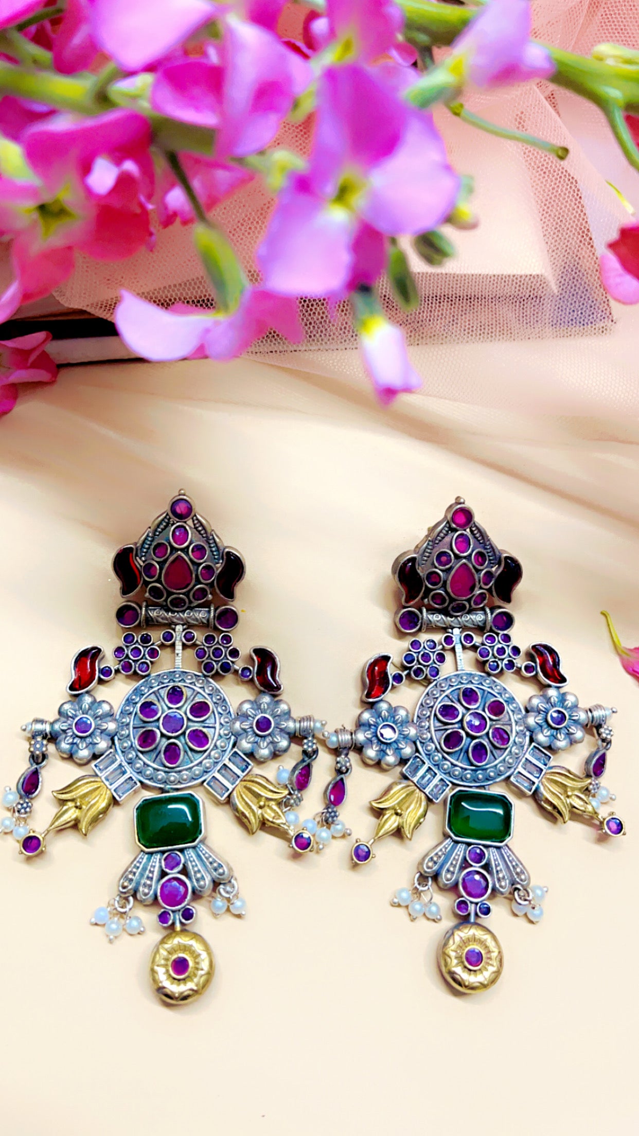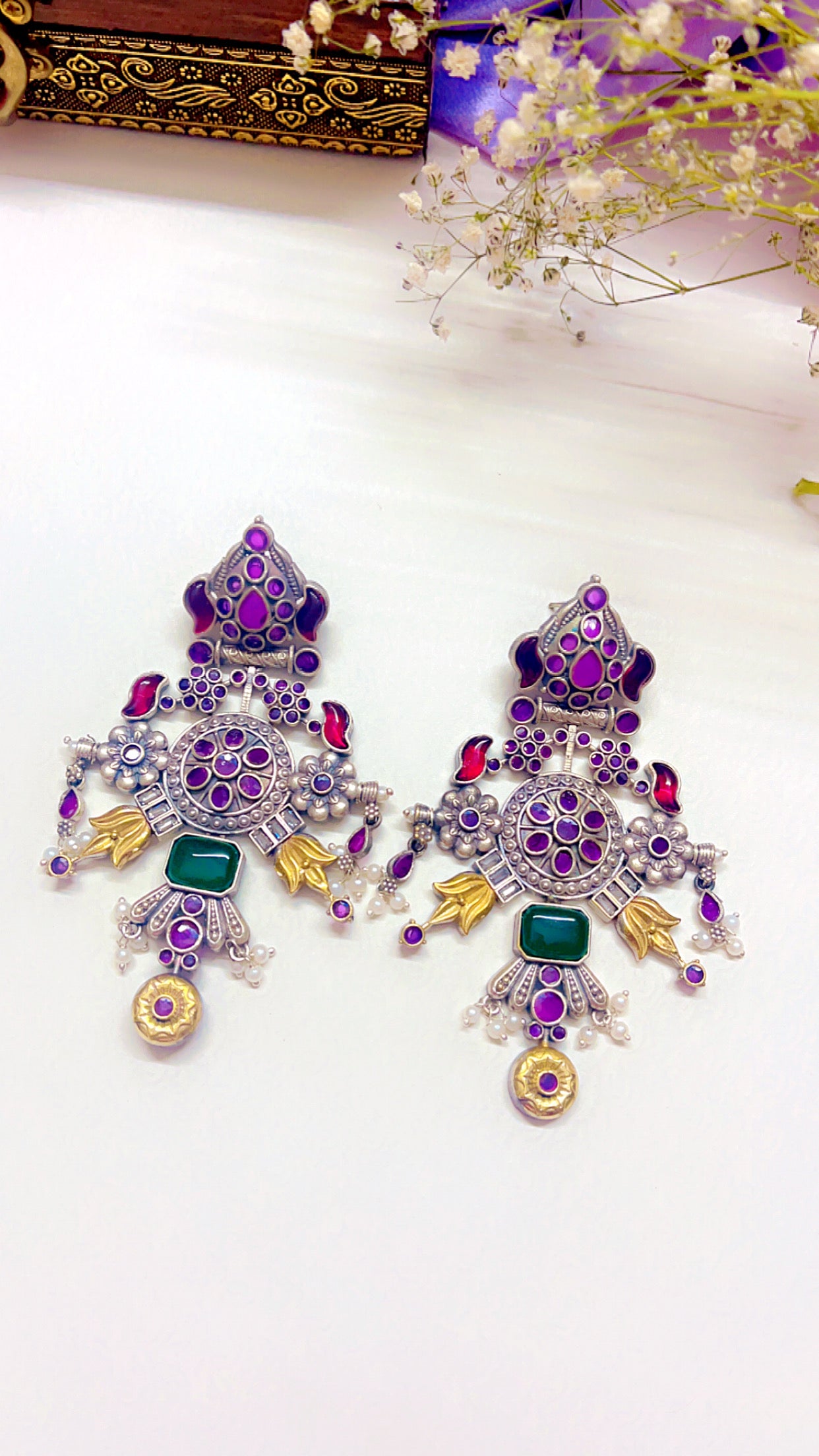 Add a touch of bohemian style with our Aheli Earring. The statement design will elevate any outfit, while the silver material adds a touch of elegance. Perfect for those looking to make a stylish statement.