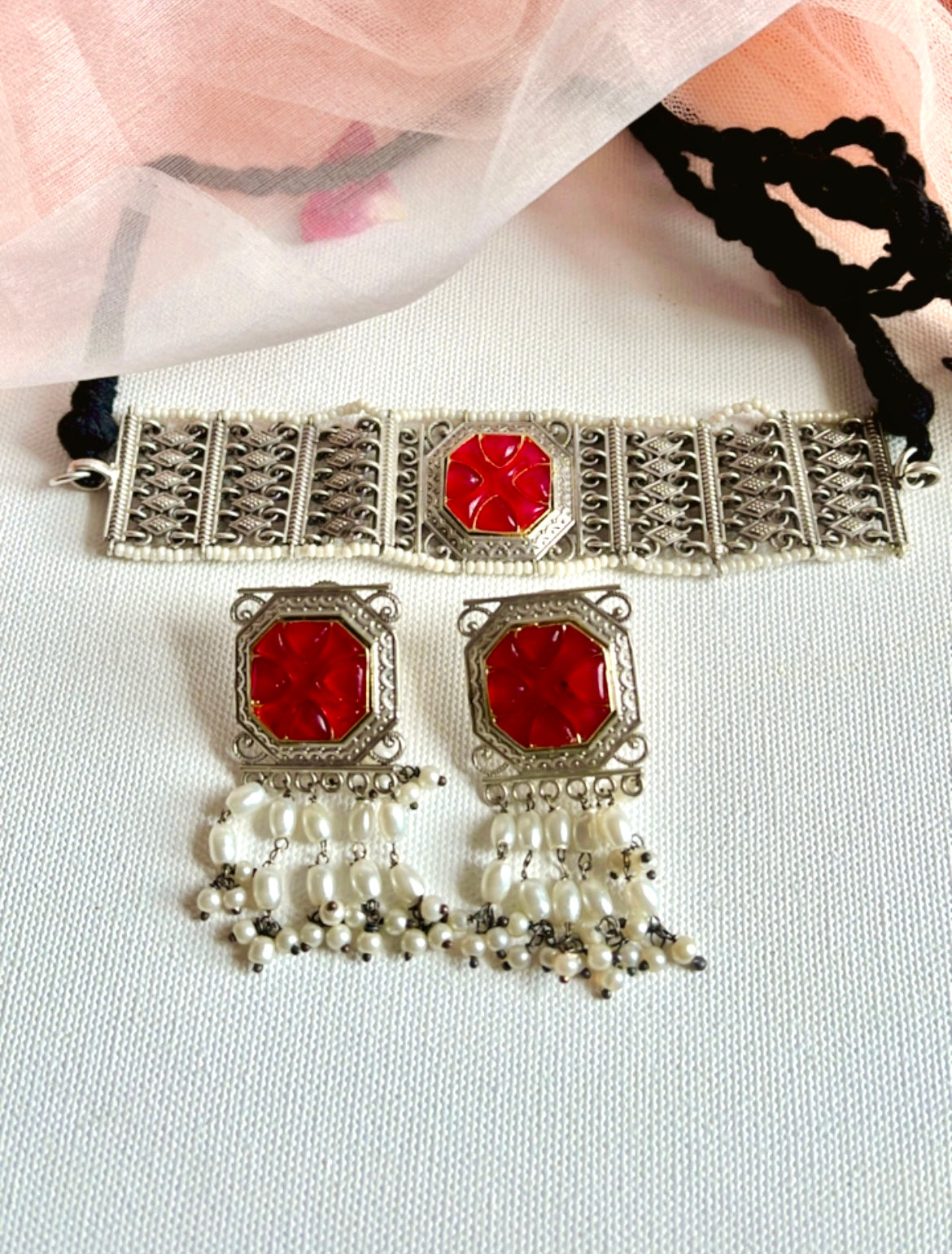 This Namita neckpiece is the perfect statement piece for birthday parties and get-togethers and festive gatherings. Its simple and elegant design exudes sophistication and adds a touch of glamour to any outfit. Made with high-quality materials, it is sure to make a solid statement for any occasion.