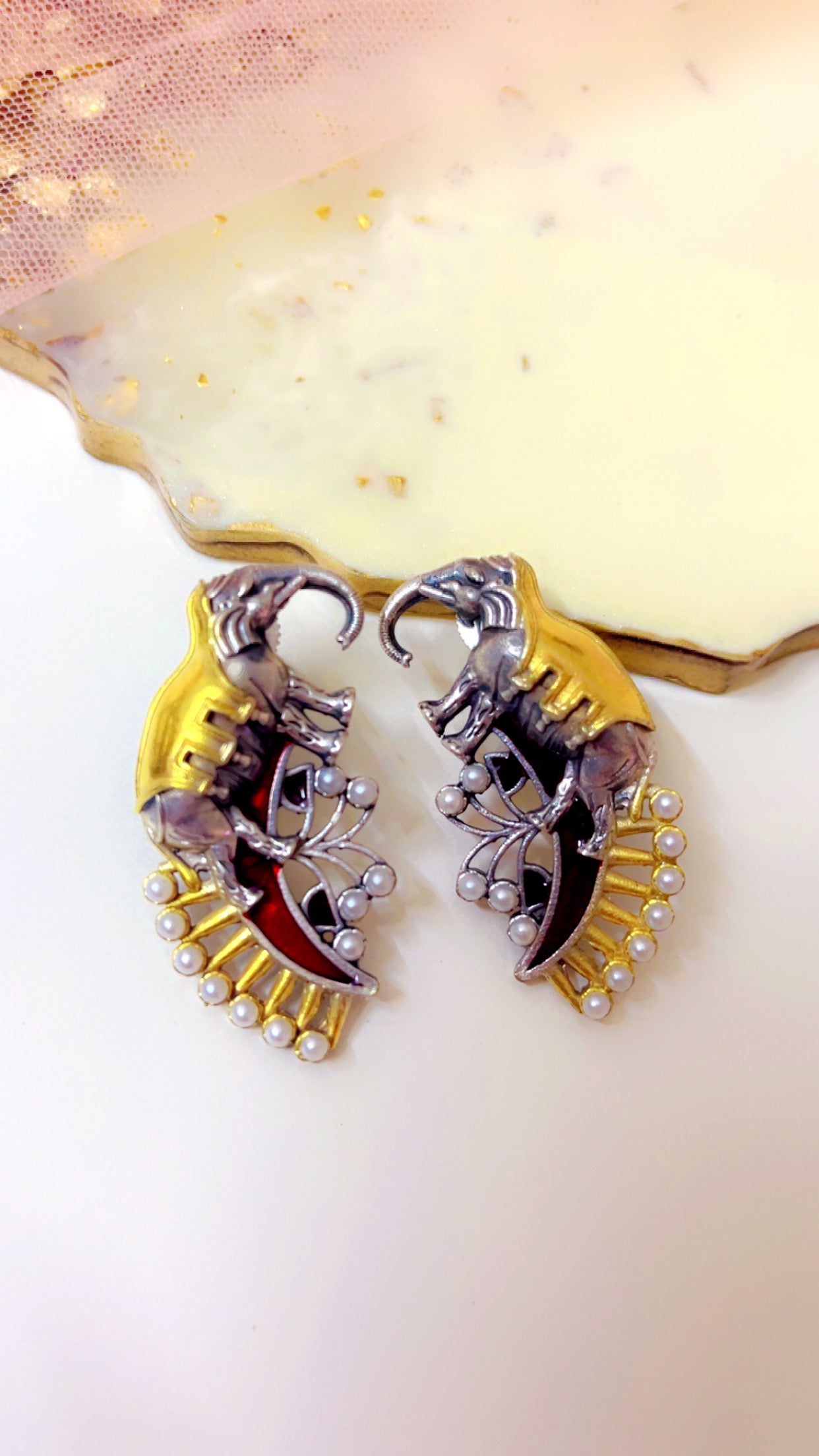 The Varan Silver Earring combines expert craftsmanship with a refined design, featuring a unique Elephant motif crafted from high-quality silver. This elegant accessory elevates any outfit, offering a subtle statement of sophistication and artistic flair. Perfect for those seeking a distinctive yet tasteful addition to their jewelry collection.