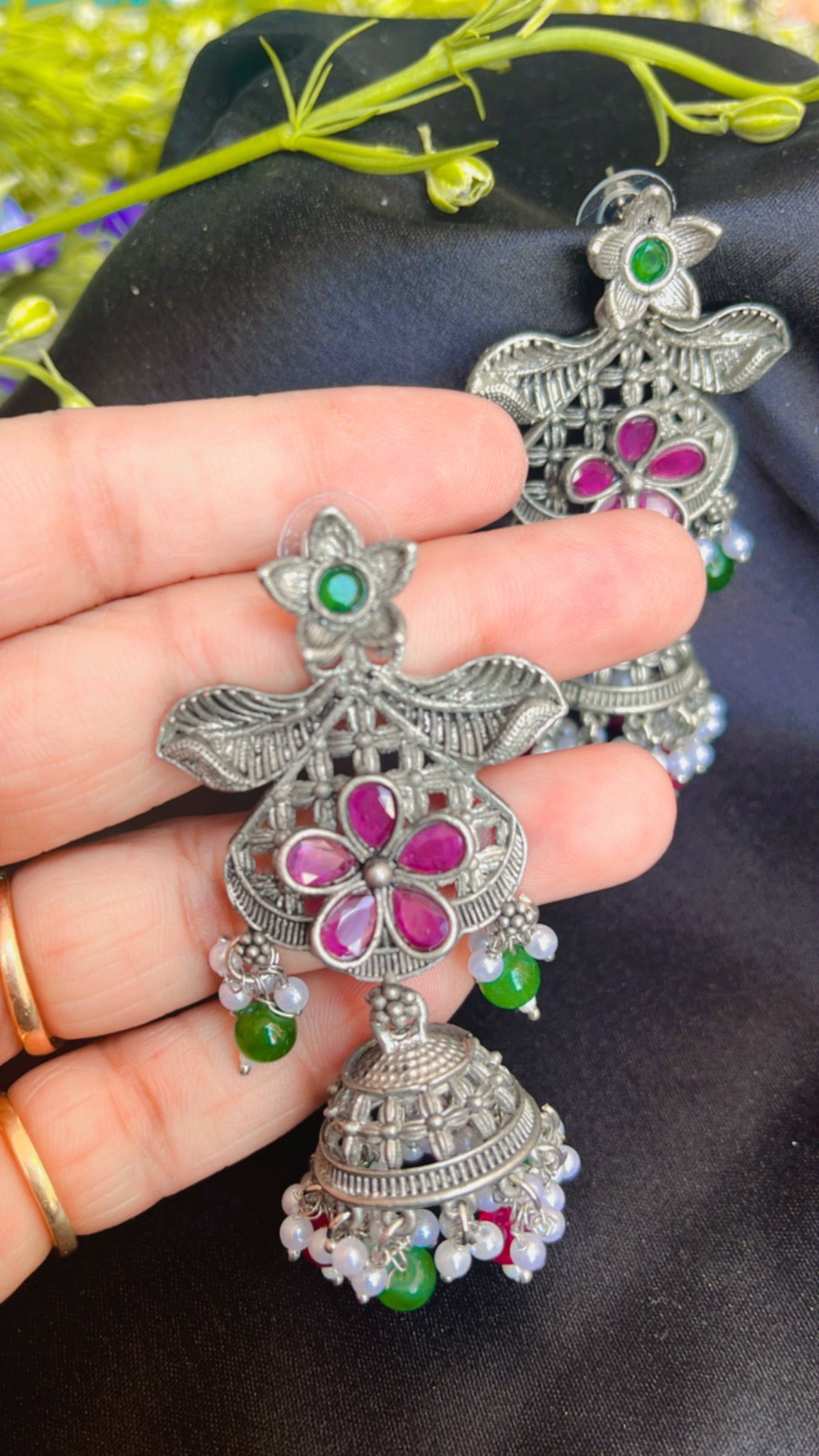 STYLE GUIDE :Oxidised earrings have a unique, rustic appearance that sets them apart from traditional polished metal jewellery. Despite their vintage appearance, oxidised earrings can be remarkably versatile. They can complement a wide range of styles, from bohemian and casual to formal and ethnic, making them suitable for various occasions.