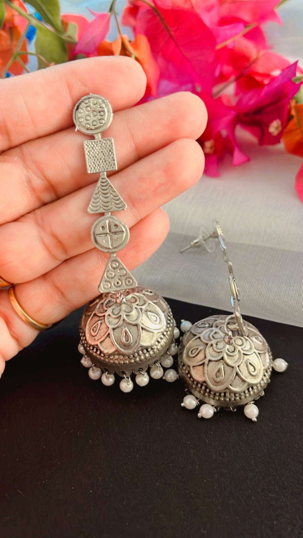 STYLE GUIDE :Oxidised earrings have a unique, rustic appearance that sets them apart from traditional polished metal jewellery. Despite their vintage appearance, oxidised earrings can be remarkably versatile. They can complement a wide range of styles, from bohemian and casual to formal and ethnic, making them suitable for various occasions.
