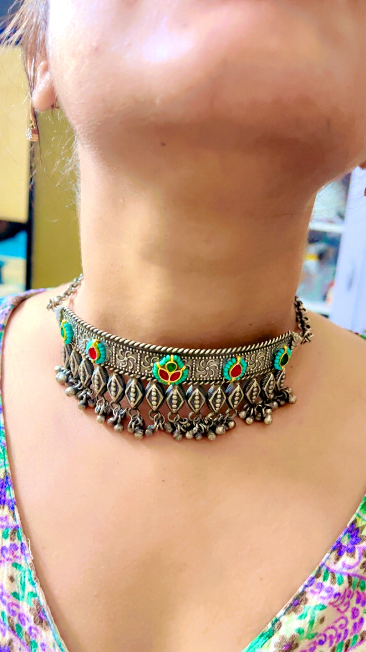 Elevate your style with the Jayshree Silver Neckpiece, a stunning blend of traditional Ahmedabad kundan artistry and refined silver craftsmanship. This elegant piece showcases exquisite kundan stones set meticulously to highlight their radiant beauty, making it perfect for special occasions or adding a touch of sophistication to everyday wear. Crafted to reflect timeless grace, the Jayshree Neckpiece combines cultural heritage with expert design for a truly distinguished accessory.