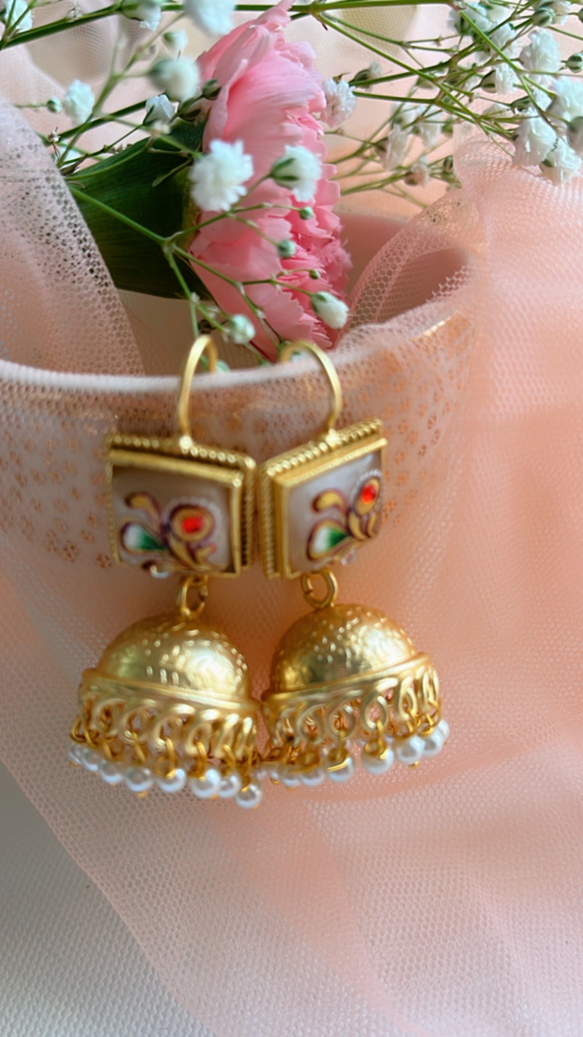 Introducing White Mira Jumka Earrings - a beautiful, simple, and elegant addition to any jewelry collection. Crafted with expert precision, these earrings exude timeless style and sophistication. Elevate any outfit and make a statement with these stunning earrings.