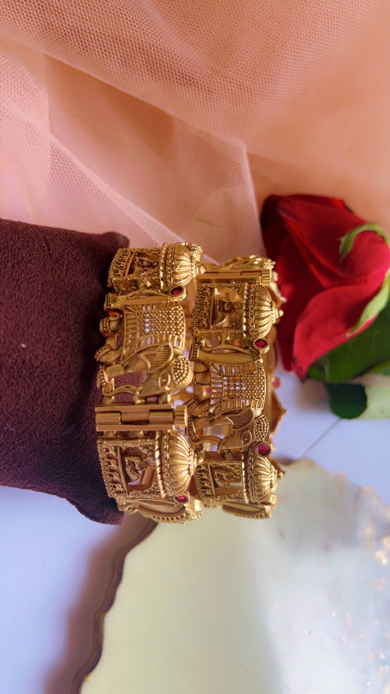 Ethnic gold plated bangles, where timeless elegance meets cultural allure. These stunning wrist ornaments capture the essence of tradition with a touch of opulence. Here's a style tip to help you make a statement with your ethnic golden plated bangles