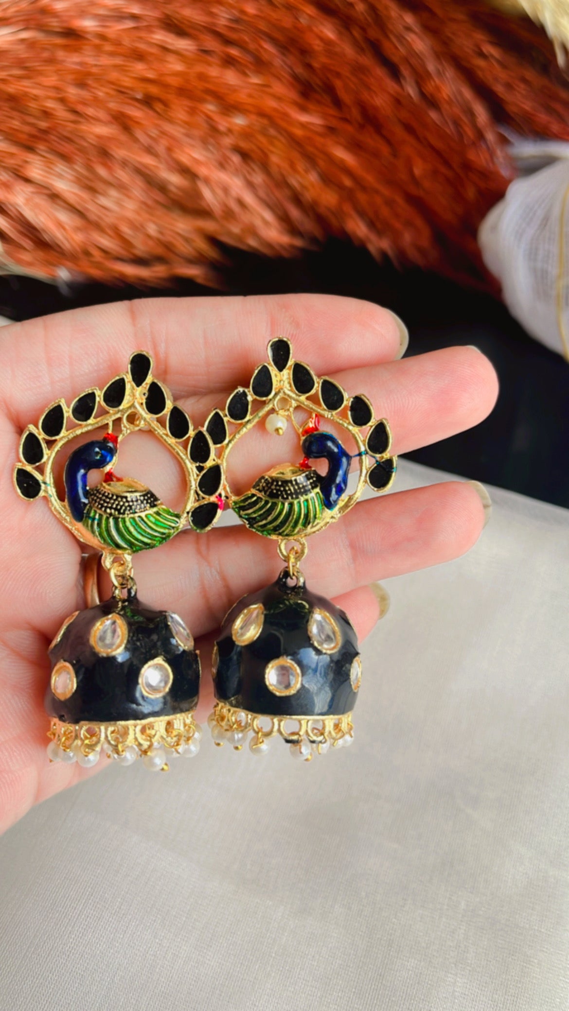 Black Mayur Ethnic Earring