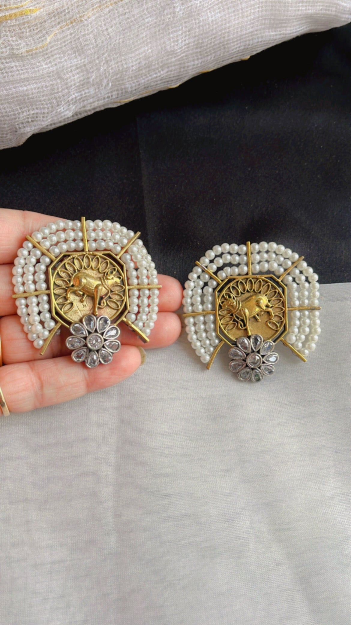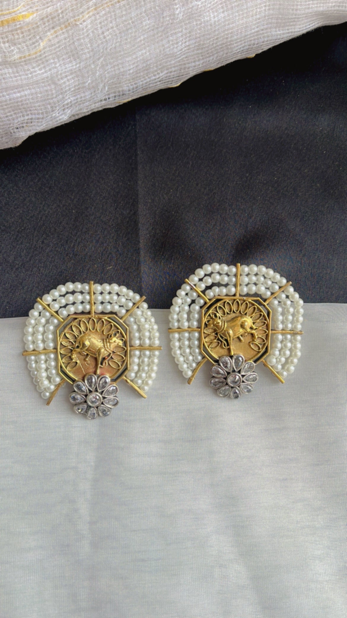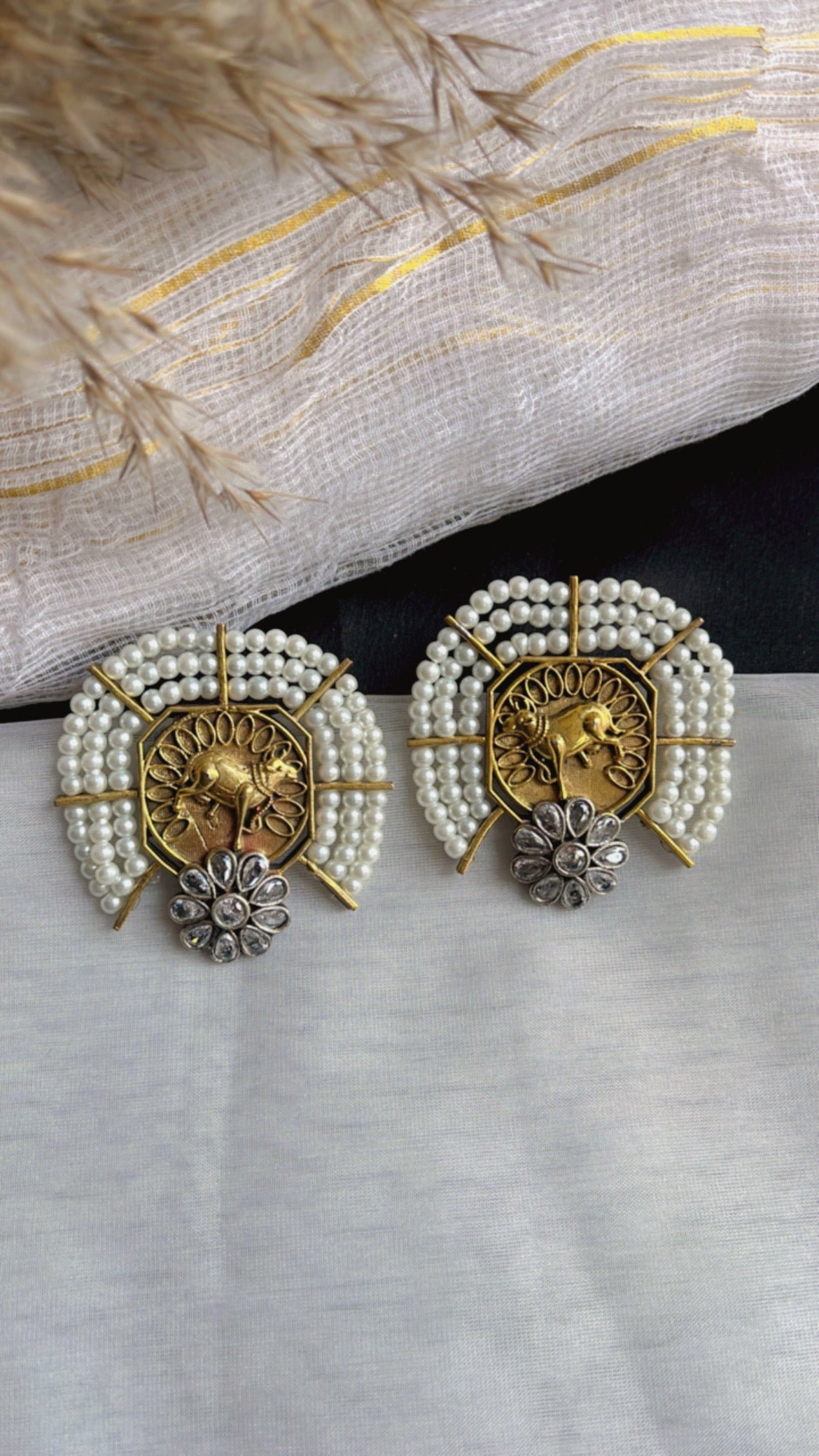 Enhance your accessory collection with the elegant Pearl Ramdheenu Earring. Crafted with delicate details, these earrings are a perfect addition to any outfit. The beautiful pearls add a touch of sophistication, making you stand out with style and grace. Elevate your look with these stunning earrings.
