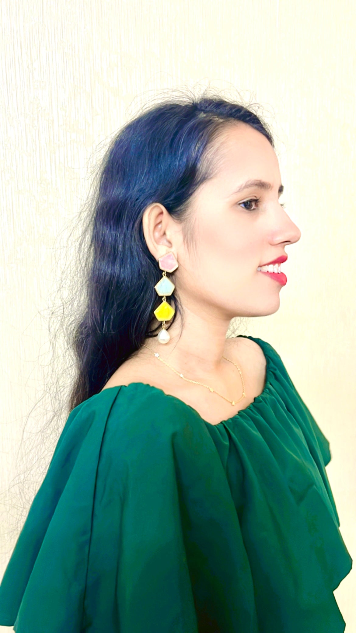 Enhance your outfit with our Zoyana Earrings. The glittery stone adds a subtle sparkle, making you stand out in any crowd. Perfect for any occasion, these earrings will surely grab attention and elevate your style.