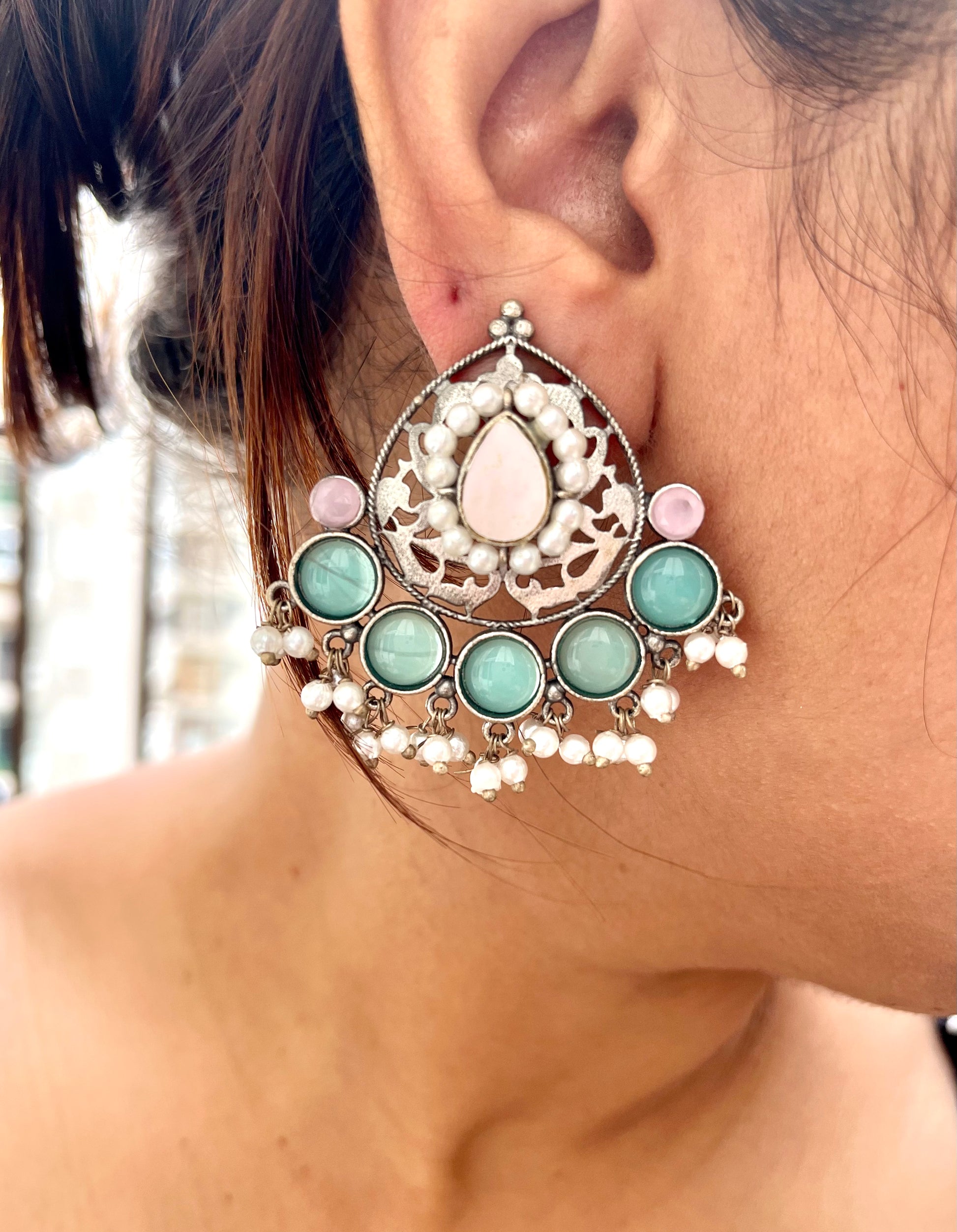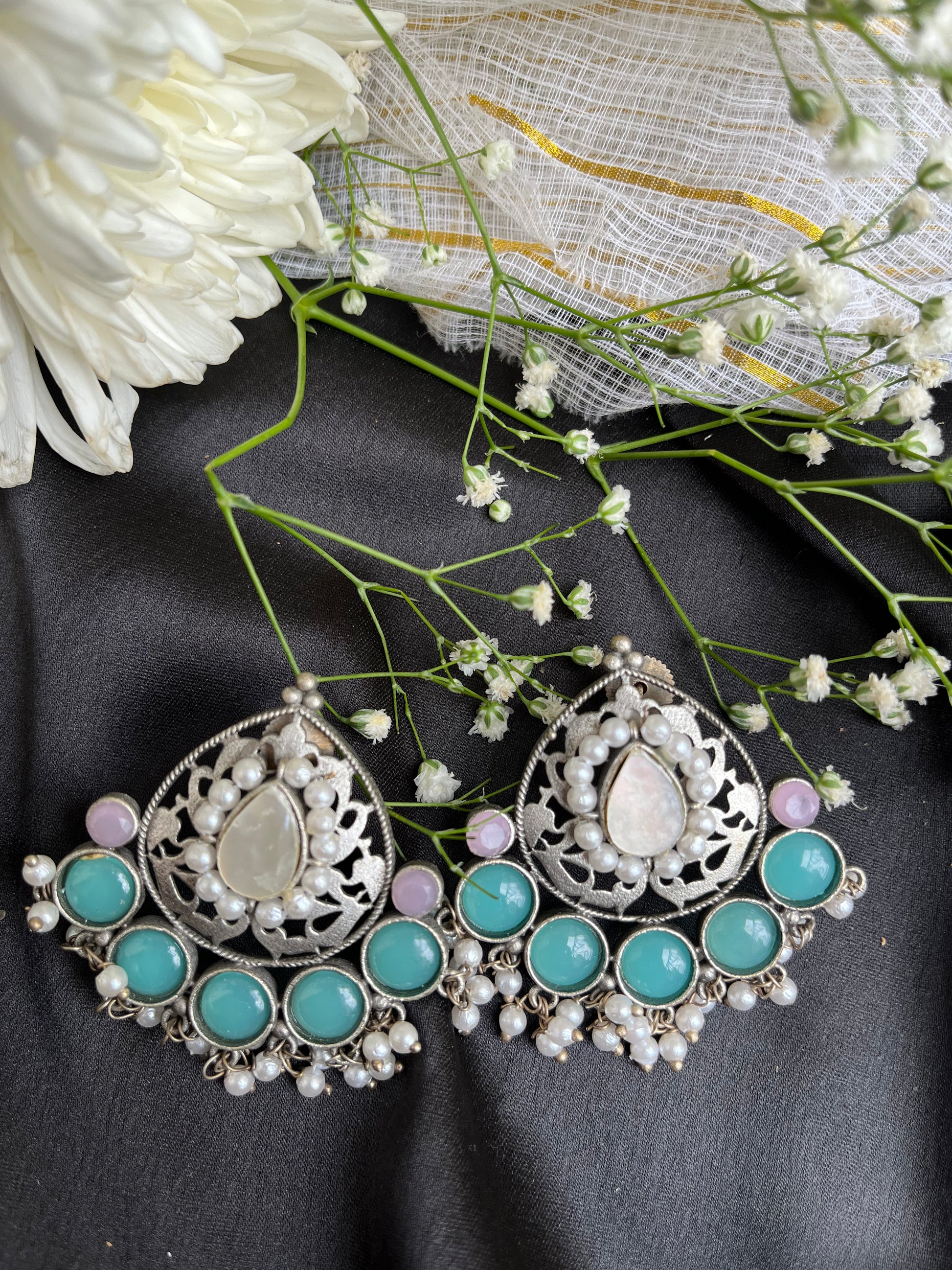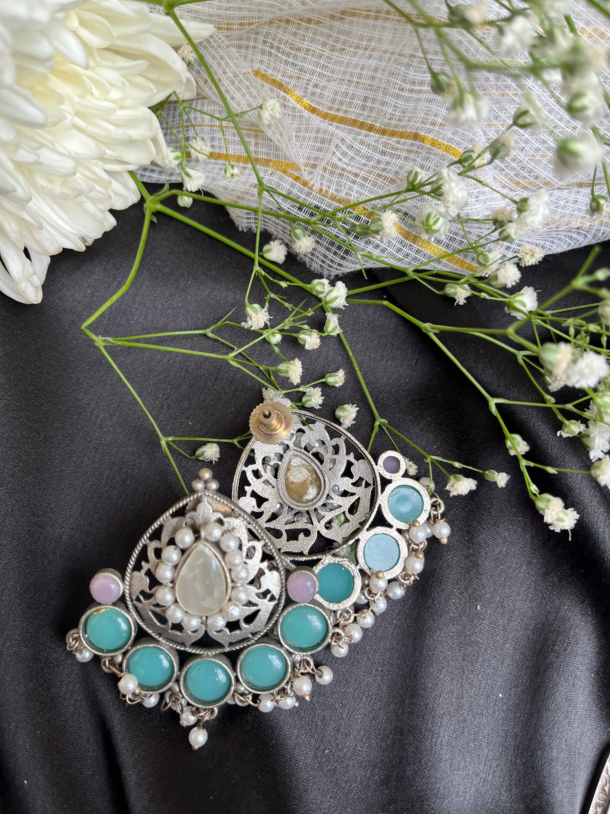 Crafted with exquisite detail, the Nayantara Silver Earring exudes timeless beauty and elegance. With its delicate design, this earring is perfect for any occasion, adding a touch of sophistication to your look. Elevate your style with this stunning piece of jewelry.