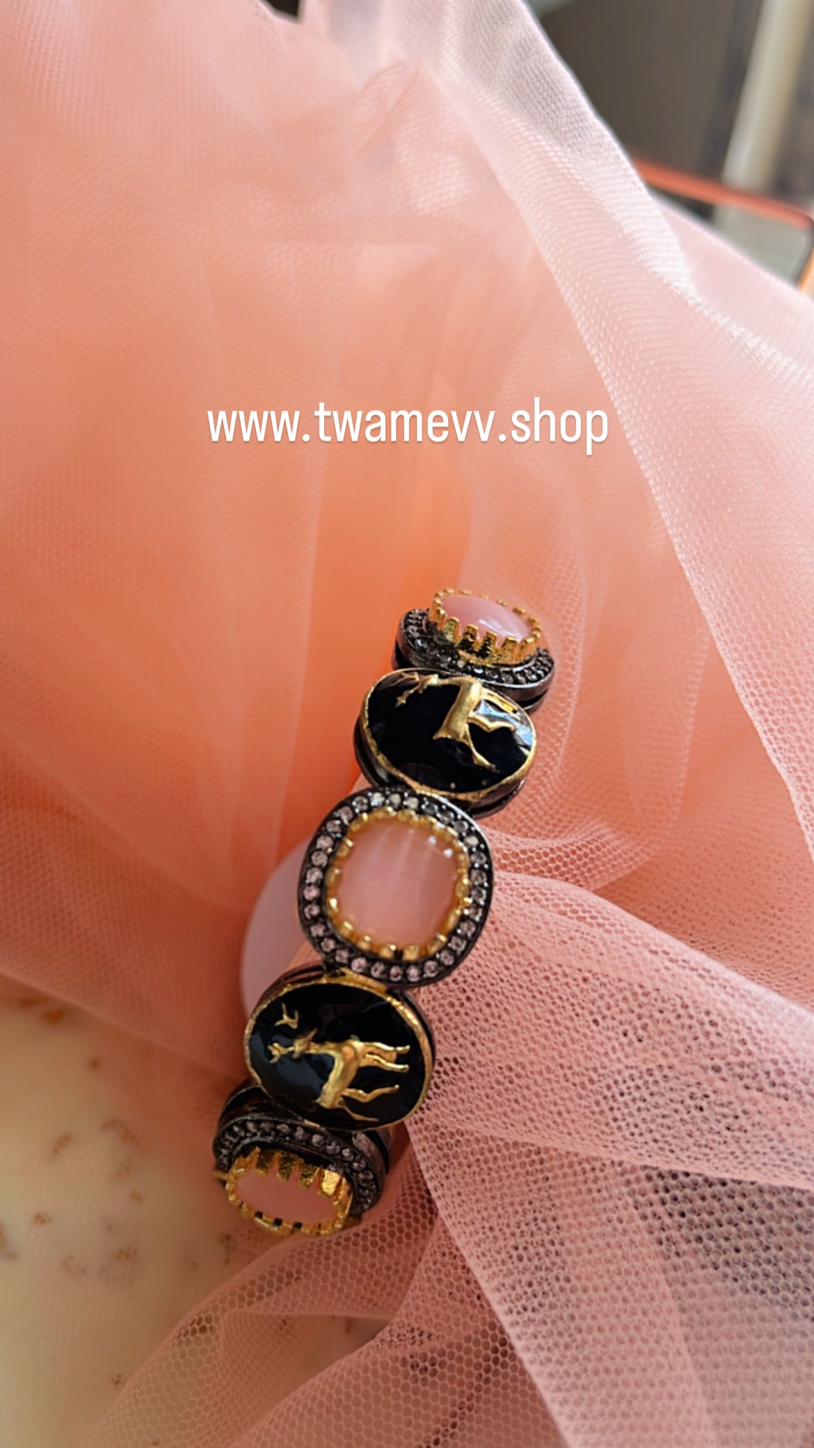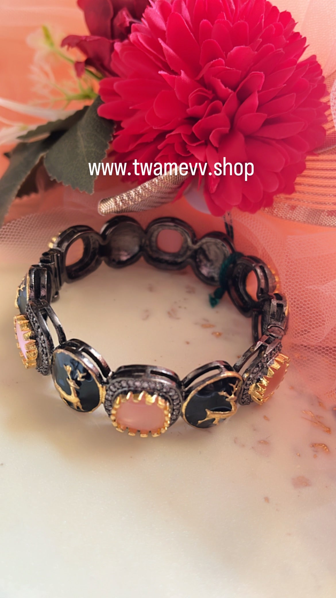 Upgrade your style with the Neer Pink Bangle. Crafted with high quality brass and a stunning silver polish, this bangle adds a touch of boho flair to any outfit. Bold and beautiful, it's the perfect fusion accessory for those looking to make a statement.