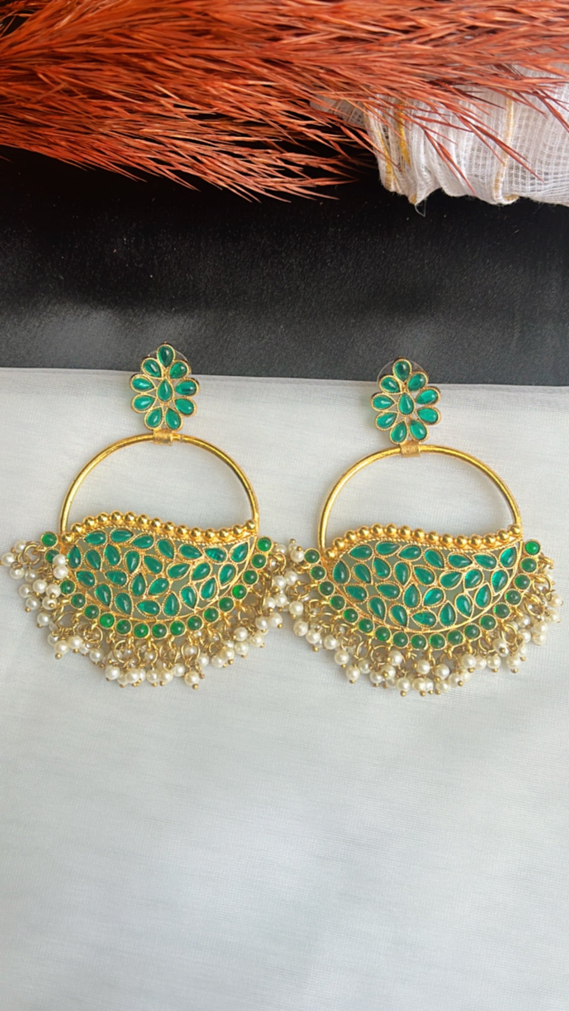 Transform any outfit with our Green Megha Earrings. These earrings are the perfect addition to your jewelry collection. Suitable for any occasion, they effortlessly elevate your Indian and Western attire. Upgrade your style with our elegant and versatile earrings.