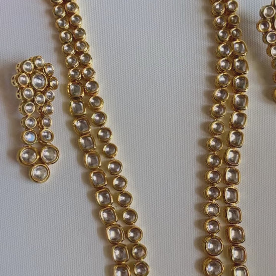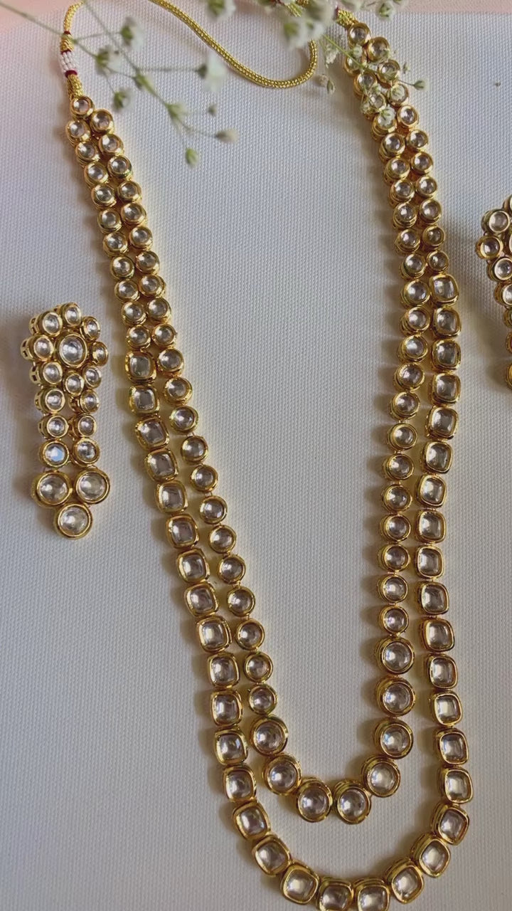 The Nita Necklace Set features stunning polki kundan and is perfect for weddings and other special occasions. Its beautiful design and high quality make it the ideal accessory for any formal event. Elevate your style with this exquisite necklace set.